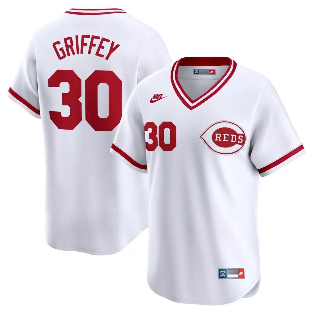 Ken Griffey Cincinnati Reds Nike Throwback Cooperstown Limited Jersey | White | For Men, Women & Youth;Ken Griffey Jr. 30 Cincinnati Reds 2023 Stitched Vapor Jersey | Black | For Men, Women & Youth;Ken Griffey Jr. 30 Cincinnati Reds Black All Stitched Jersey | Male Name Patch 2025 | For Men, Women & Youth;Ken Griffey Jr. Cincinnati Reds Batting Practice Jersey | Black Replica for Men, Women & Youth | Cooperstown Collection;Ken Griffey Jr. Cincinnati Reds Black 2023 City Connect Cool Base Jersey | All Stitched | Fan Gear | For Men, Women & Youth