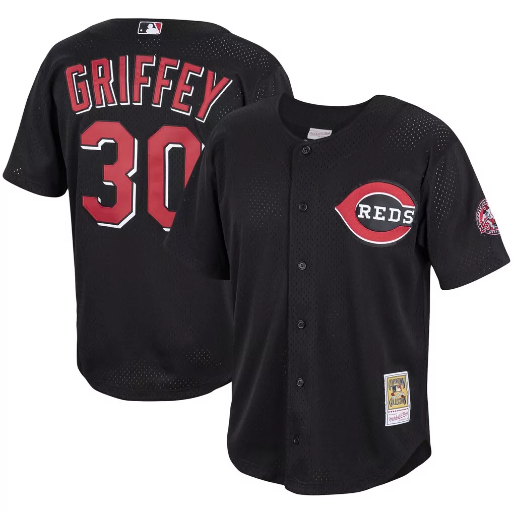 Ken Griffey Jr. Cincinnati Reds Black Cooperstown Collection Mesh Batting Practice Jersey | Classic Fan Gear for Men, Women & Youth;Ken Griffey Jr. Cincinnati Reds Black Mesh Batting Practice Jersey | Cooperstown Collection | Replica Fan Gear | For Men, Women & Youth;Ken Griffey Jr. Cincinnati Reds Gray 2004 Cooperstown Collection Throwback Jersey | Retro Fan Gear for Men, Women & Youth;Ken Griffey Jr. Cincinnati Reds Men’s Black 2023 City Connect Cool Jersey | All Stitched | Fan Gear | For Men, Women & Youth;Ken Griffey Jr. Cincinnati Reds Men’s Black 2023 City Connect Flex Jersey | All Stitched | Fan Gear | For Men, Women & Youth