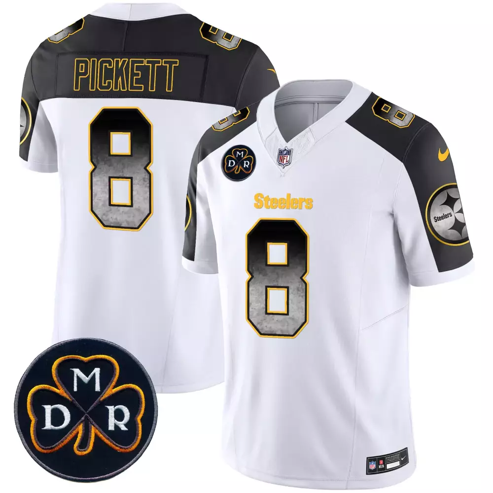 Kenny Pickett Pittsburgh Steelers Color Rush Jersey | Stitched Fan Gear for Men, Women & Youth;Kenny Pickett Pittsburgh Steelers Color Rush Vapor Limited Jersey | Stitched Fan Gear for Men, Women & Youth;Kenny Pickett Pittsburgh Steelers DMR Patch Arch Smoke Vapor Limited Jersey | Stitched Fan Gear for Men, Women & Youth;Kenny Pickett Pittsburgh Steelers Game White Jersey | Stitched Fan Gear for Men, Women & Youth;Kenny Pickett Pittsburgh Steelers Gold Inverted Game Jersey | Stitched Fan Gear for Men, Women & Youth
