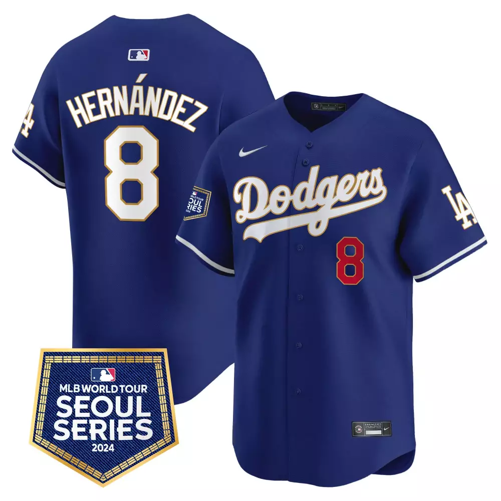 Kike Hernandez 2024 World Tour Seoul Series Patch Jersey | Black Gold Vapor Premier Limited Edition | Fan Gear for Men, Women & Youth;Kike Hernandez 2024 World Tour Seoul Series Patch Jersey | Royal Vapor Premier Limited Edition | For Men, Women & Youth;Kike Hernandez Alternate Royal Men’s 2024 World Series Vapor Premier Jersey | All Stitched Limited Edition | For Men, Women & Youth;Kike Hernandez Alternate Royal Men’s Fernando Memorial 2024 World Series Patch Vapor Premier Jersey | Limited Edition | For Men, Women & Youth;Kike Hernandez Alternate Royal Men’s Fernando Valenzuela 2024 World Series Patch Vapor Premier Jersey | Limited Edition | For Men, Women & Youth