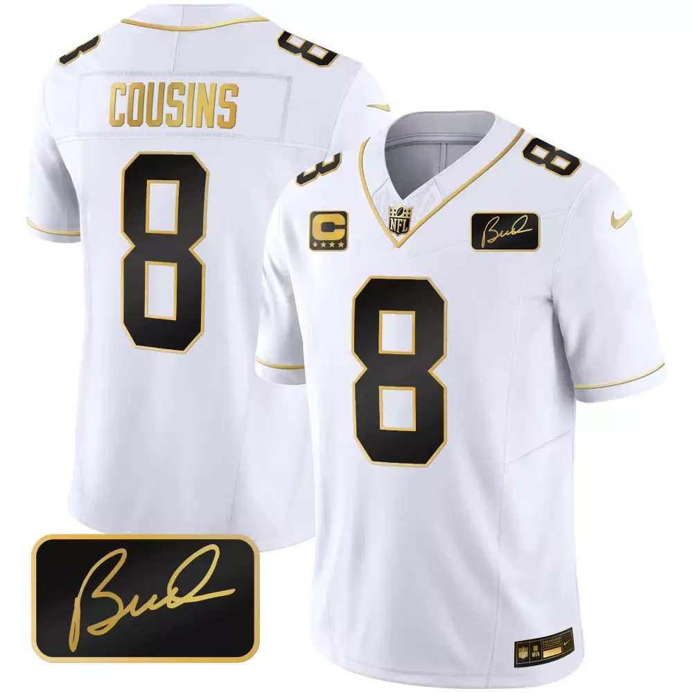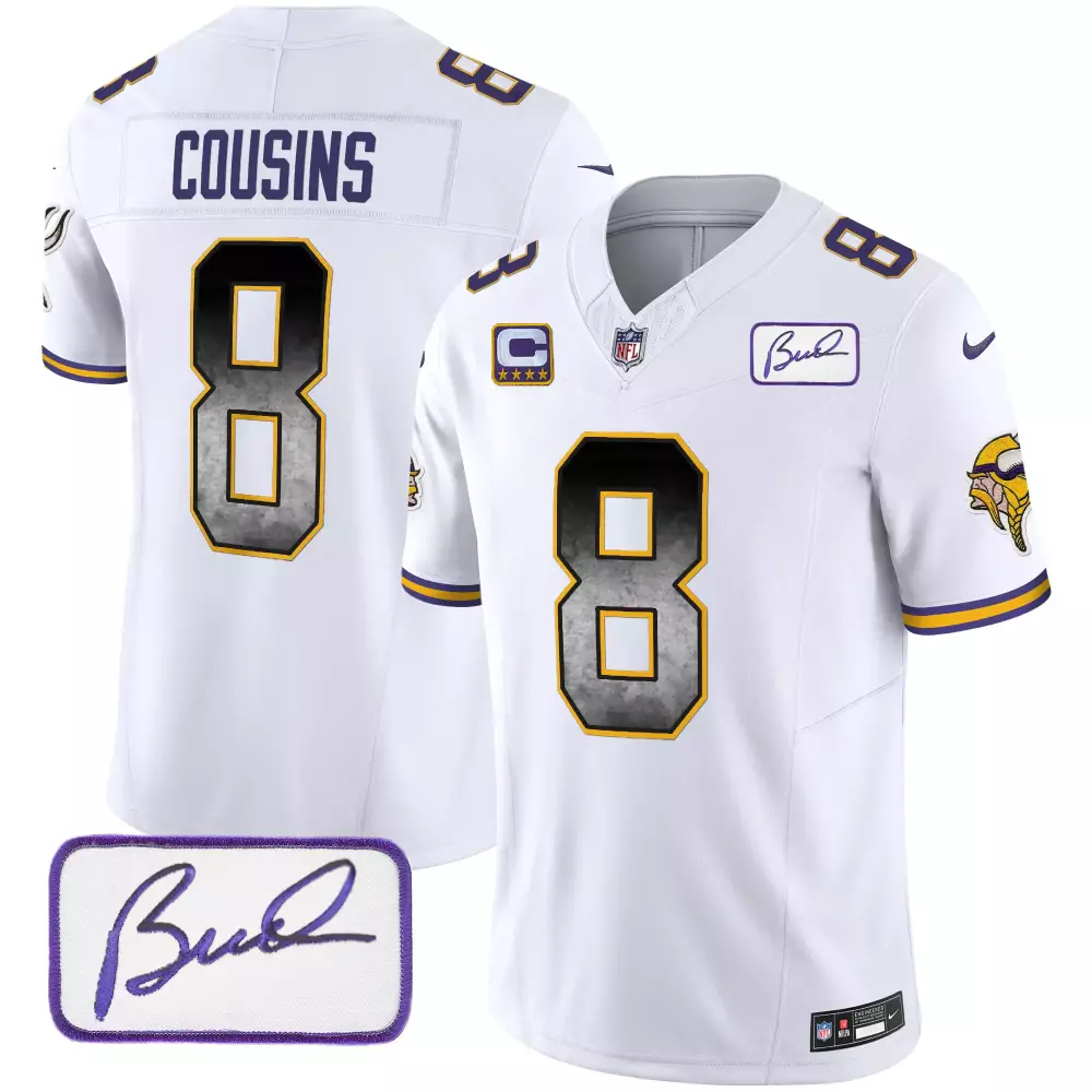 Kirk Cousins Minnesota Vikings 2024 Vapor Elite Jersey | White Stitched Fan Gear | For Men, Women & Youth;Kirk Cousins Minnesota Vikings 2024 Vapor Jersey | White Stitched with Bud Grant Patch | For Men, Women & Youth;Kirk Cousins Minnesota Vikings Bud Grant Patch Jersey | White Gold Limited Edition | Stitched Fan Gear for Men, Women & Youth;Kirk Cousins Minnesota Vikings Gold Purple Jersey | Stitched Fan Gear for Men, Women & Youth | Limited Edition Style;Kirk Cousins Minnesota Vikings Men’s Limited Jersey | White Stitched Name Patch 2023 | For Men, Women & Youth