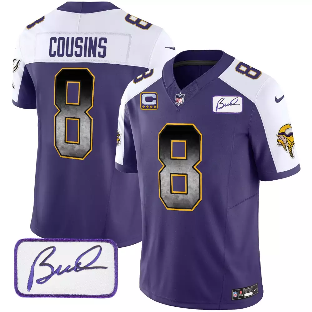 Kirk Cousins Minnesota Vikings White Gold Jersey | Stitched Fan Gear for Women | Limited Edition Style;Kirk Cousins Minnesota Vikings White Gold Jersey | Stitched Fan Gear for Youth | Limited Edition Style;Kirk Cousins Purple & Gold Men’s Minnesota Vikings Vapor Jersey | All Stitched | For Men, Women & Youth;Kirk Cousins Purple & Gold Women’s Minnesota Vikings Jersey | All Stitched | For Men, Women & Youth;Kirk Cousins Purple Alternate Men’s Minnesota Vikings Bud Grant Arch Smoke Vapor Jersey | All Stitched | Stylish Fan Gear for Men, Women & Youth