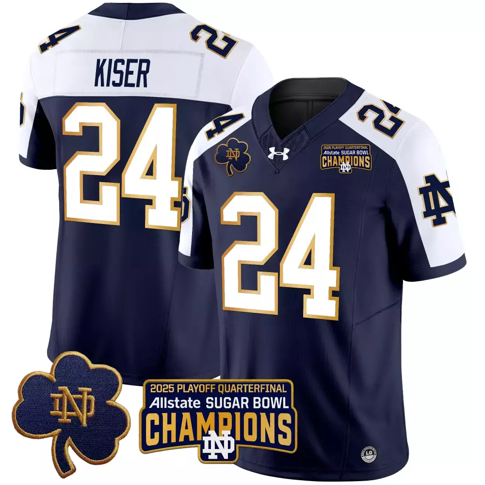 Kiser 24 Notre Dame 2023 Navy Jersey | All Stitched with Name Patch | Fan Gear for Game Day | For Men, Women & Youth;Kiser 24 Notre Dame 2023 Navy Stitched Jersey with Name Patch | Fan Gear for Game Day | For Men, Women & Youth;Kiser 24 Notre Dame 2023 White Stitched Jersey with Name Patch | All Stitched Fan Gear | For Men, Women & Youth;Kiser 24 Notre Dame 2023 White Stitched Jersey with Name Patch | Fan Gear for Game Day | For Men, Women & Youth;Kiser 24 Notre Dame 2025 Green Stitched Vapor Jersey | Sugar Bowl Champions Fan Gear | For Men, Women & Youth