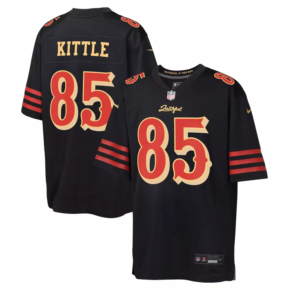 Kittle 85 San Francisco 49ers 2023 Black Stitched Jersey | Name Patch | For Men, Women & Youth