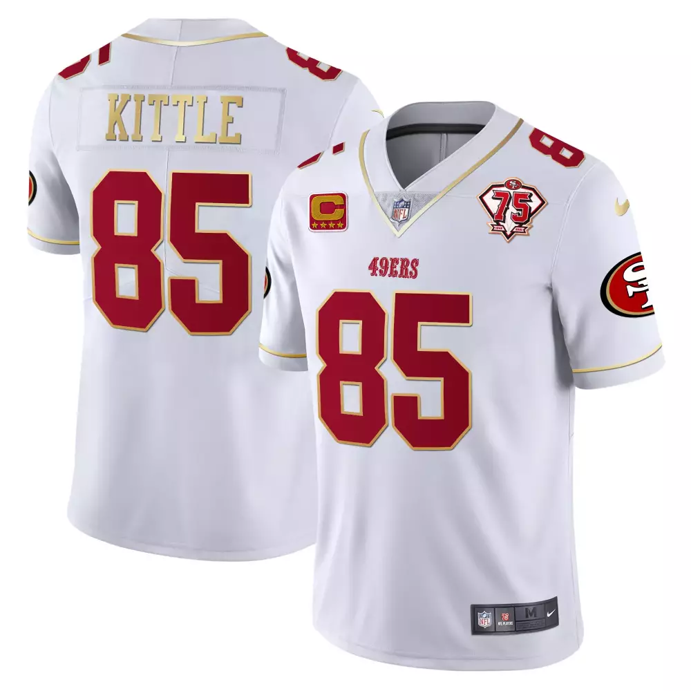 Kittle 85 San Francisco 49ers 2023 Stitched Vapor Jersey | White & Gold | Replica Fan Gear | For Men, Women & Youth;Kittle 85 San Francisco 49ers 2023 White Red Stitched Jersey | Name Patch | For Men, Women & Youth;Kittle 85 San Francisco 49ers 2023 White Stitched Jersey | 75th Anniversary Name Patch | For Men, Women & Youth;Kittle 85 San Francisco 49ers 2023 White Stitched Jersey | 75th Anniversary Patch | For Men, Women & Youth;Kittle 85 San Francisco 49ers 2023 White Stitched Jersey | Name Patch | For Men, Women & Youth