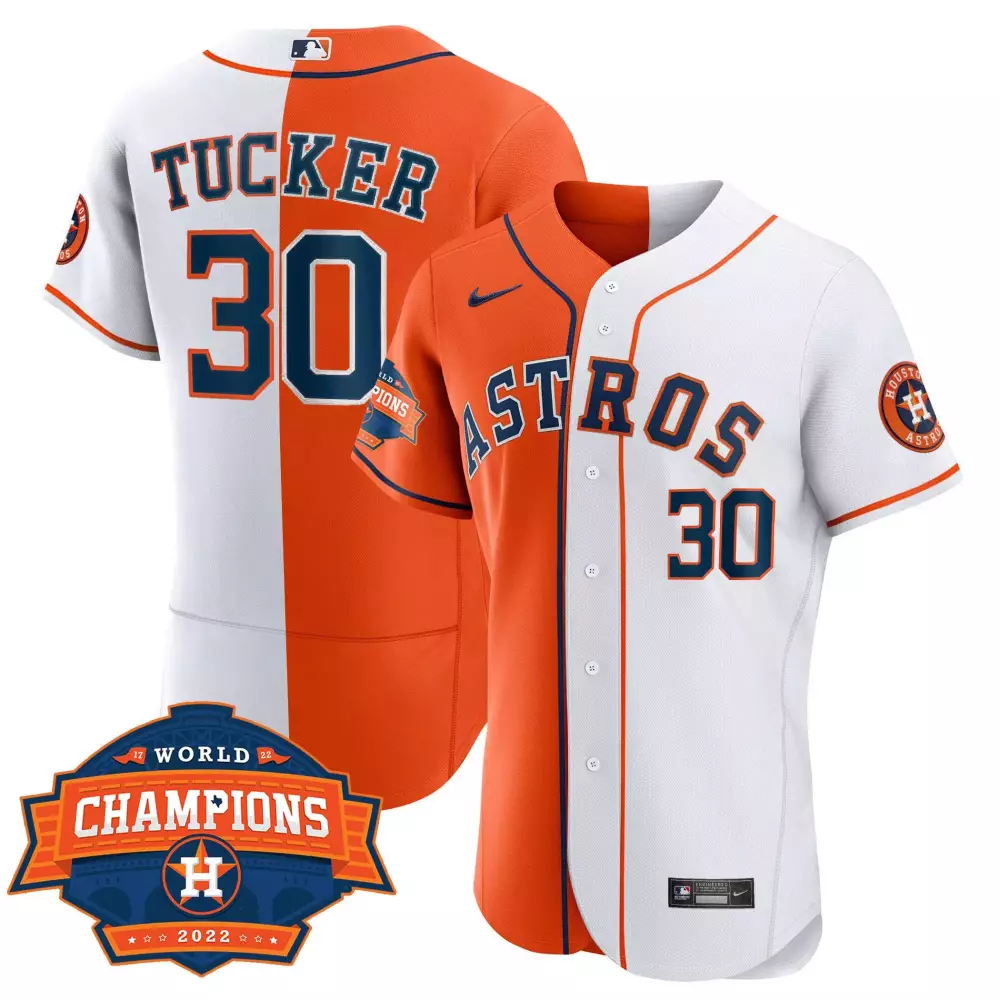 Kyle Tucker Houston Astros 2022 Champions Flex Base Split White Orange Jersey | Stitched Limited Edition | Fan Gear for Men, Women & Youth