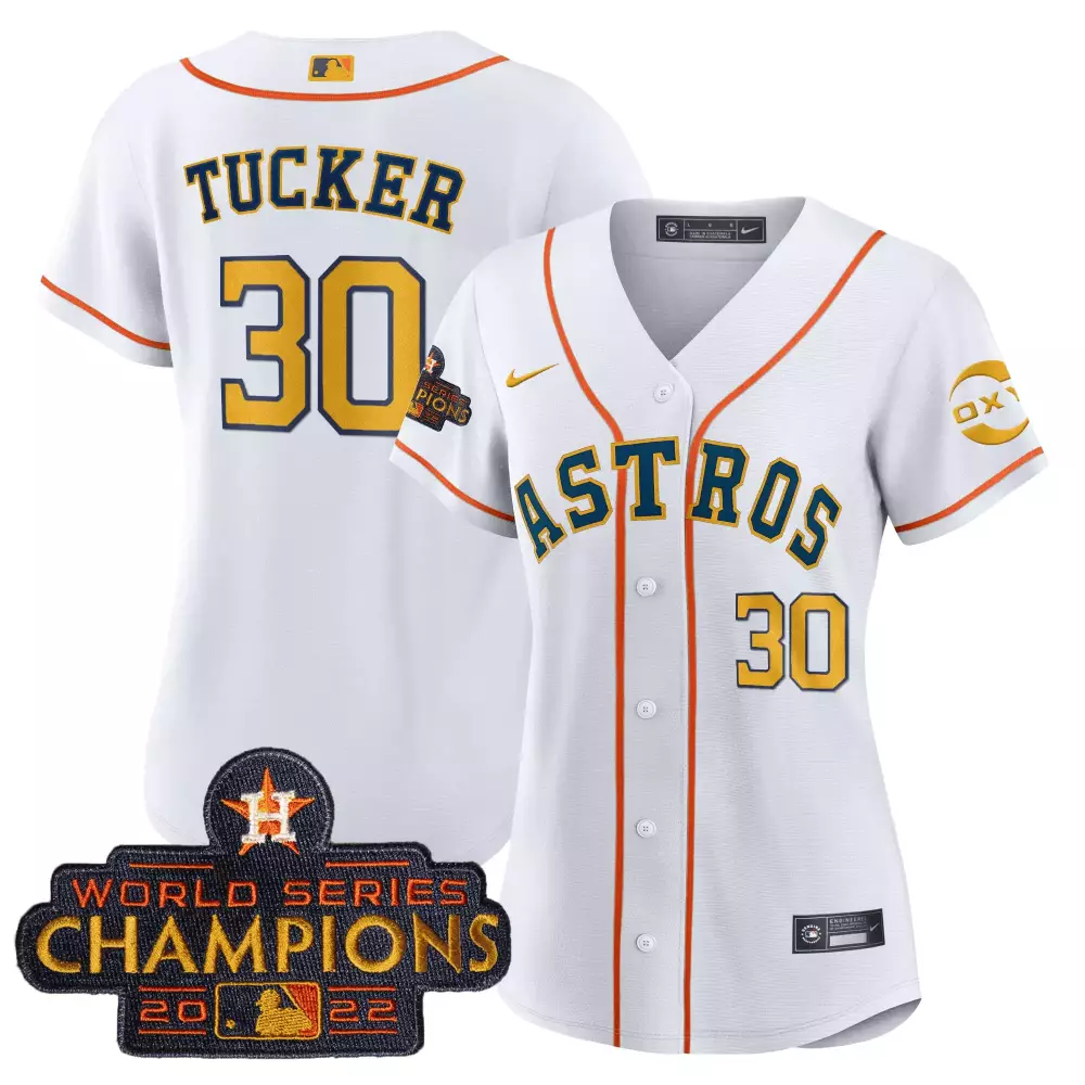 Kyle Tucker Houston Astros 2022 Champions Flex Base Split White Orange Jersey | Stitched Limited Edition | Fan Gear for Men, Women & Youth;Kyle Tucker Houston Astros 2022 Champions Gold Rush Oxy Patch Cool Base Jersey | Women’s Stitched | Great for Game Day | For Men, Women & Youth;Kyle Tucker Houston Astros 2022 Champions Gold Rush Oxy Patch Flex Base Jersey | Women’s Stitched | Perfect Fan Gear | For Men, Women & Youth;Kyle Tucker Houston Astros 2022 Champions Limited Edition Jersey | Orange Sleeves Cool Base | Fan Gear for Men, Women & Youth;Kyle Tucker Houston Astros 2022 Champions Limited Gray Road Player Jersey | Cool Base | For Men, Women & Youth