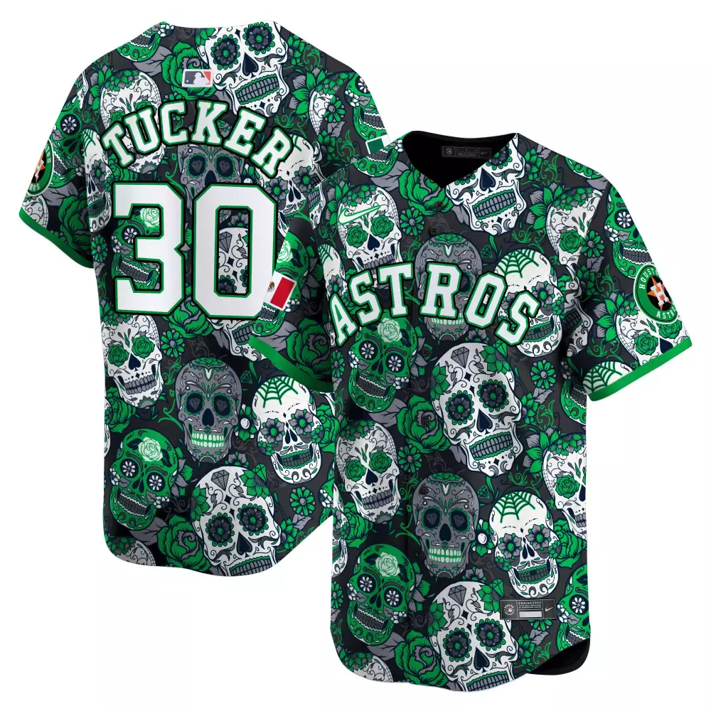 Kyle Tucker Houston Astros 2025 Sugar Skull Mexico Vapor Premier Limited Jersey | Green | Printed Fan Gear for Men, Women & Youth;Kyle Tucker Houston Astros 2025 Texas Map Cool Base Jersey | Green | All Stitched Fan Gear for Men, Women & Youth;Kyle Tucker Houston Astros 2025 Texas Patch Vapor Premier Limited Jersey | Green | All Stitched Fan Gear for Men, Women & Youth;Kyle Tucker Houston Astros 2025 Texas Patch Vapor Premier Limited Jersey V2 | Green | All Stitched Fan Gear for Men, Women & Youth;Kyle Tucker Houston Astros 2025 Texas Patch Vapor Premier Limited Jersey V3 | Green | All Stitched Fan Gear for Men, Women & Youth