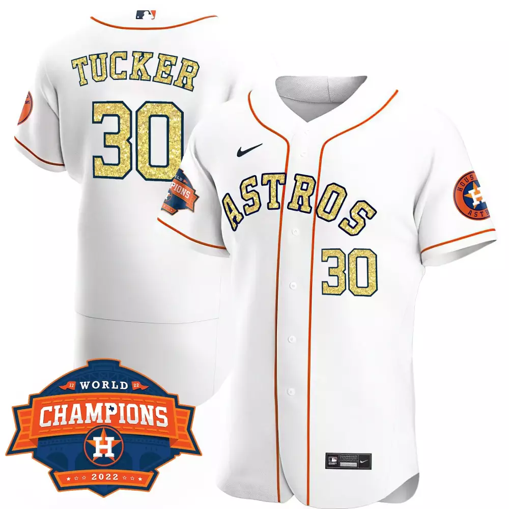 Kyle Tucker Houston Astros Men’s Cool Base Jersey | Special White Gold 2022 World Series Champions Patch | For Men, Women & Youth