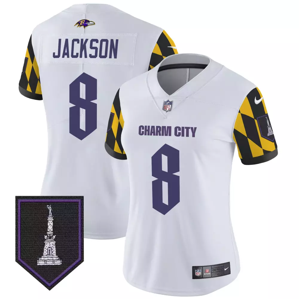 Lamar Jackson Baltimore Ravens City Edition Patch Vapor Limited Jersey | Stitched White | Fan Gear | For Men, Women & Youth;Lamar Jackson Baltimore Ravens City Edition Patch Vapor Limited Jersey | Stitched White | Fan Gear for Women | For Women;Lamar Jackson Baltimore Ravens Color Rush Black Jersey | Stitched | Fan Gear for Men, Women & Youth;Lamar Jackson Baltimore Ravens Color Sleeve Black Gold Vapor Jersey | Stitched | Fan Gear for Men, Women & Youth;Lamar Jackson Baltimore Ravens Color Sleeve Black Gold Vapor Jersey for Women | Stitched | Fan Gear for Women, Men & Youth