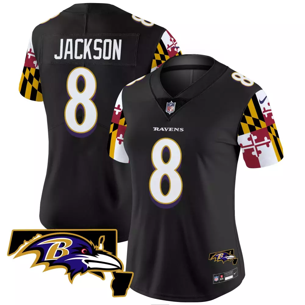 Lamar Jackson Baltimore Ravens Maryland Flag Back to Back AFC North Champions Patch Vapor Limited Jersey | Stitched White | Fan Gear | For Men, Women & Youth;Lamar Jackson Baltimore Ravens Maryland Flag Black Vapor Limited Jersey | Stitched | Fan Gear for Men, Women & Youth;Lamar Jackson Baltimore Ravens Maryland Flag Black Vapor Limited Jersey for Women | Stitched | Fan Gear for Women, Men & Youth;Lamar Jackson Baltimore Ravens Maryland Flag Black Vapor Limited Jersey V2 | Stitched | Fan Gear for Men, Women & Youth;Lamar Jackson Baltimore Ravens Maryland Flag Black Vapor Limited Jersey V2 for Women | Stitched | Fan Gear for Women, Men & Youth