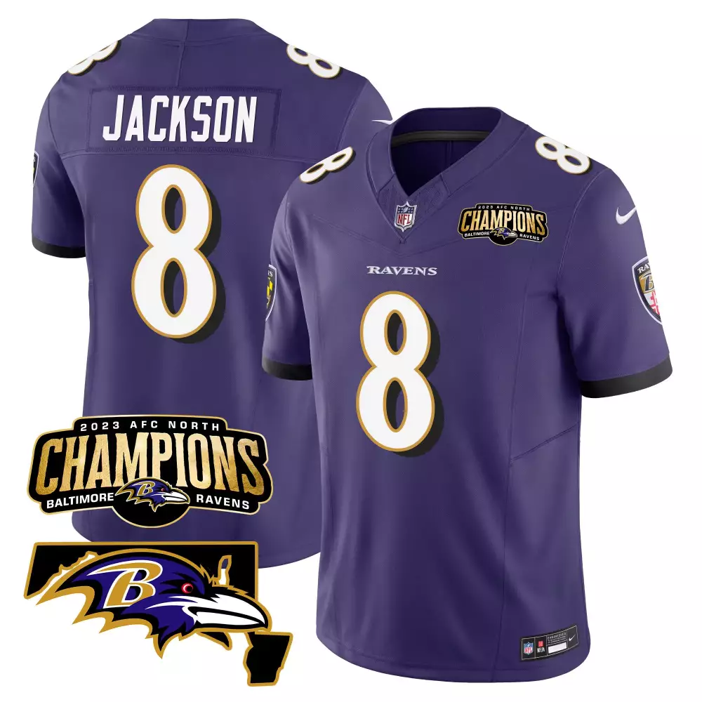 Lamar Jackson Baltimore Ravens Purple 2023 AFC North Champions Patch Vapor Limited Jersey | Stitched for All Ages;Lamar Jackson Baltimore Ravens Purple 2023 AFC North Champions Vapor Jersey | Stitched Fan Gear for All Ages;Lamar Jackson Baltimore Ravens Purple 2024 Maryland Flag Vapor Limited Jersey | Stitched Fan Gear for All Ages;Lamar Jackson Baltimore Ravens Purple 2024 Maryland Flag Vapor Limited Jersey V2 | Stitched Fan Gear for All Ages;Lamar Jackson Baltimore Ravens Purple 2024 Pro Bowl Patch Vapor Jersey | Stitched Fan Gear for All Ages