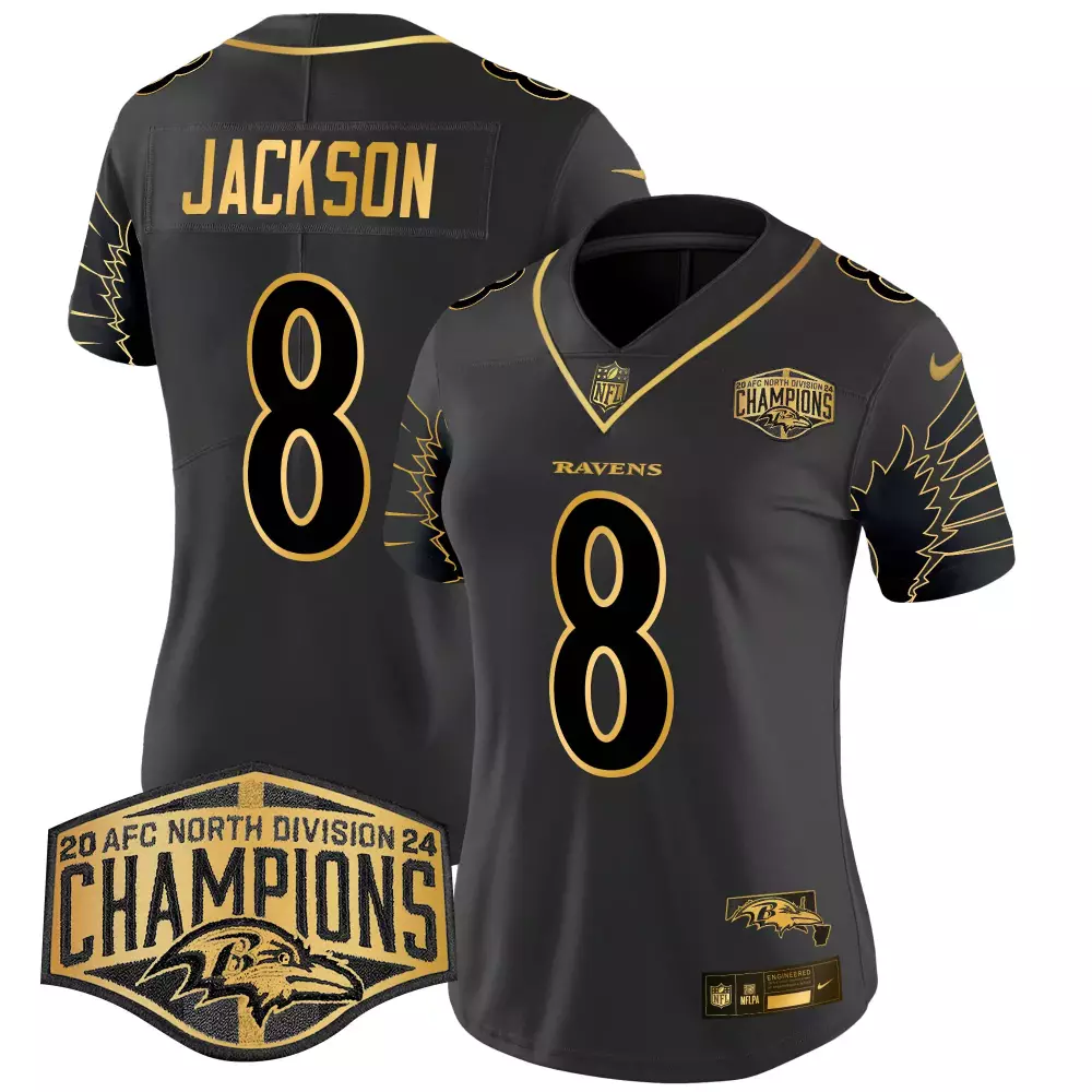 Lamar Jackson Ravens 2023 AFC North Champions Vapor Jersey | Stitched Limited Edition | Fan Gear for Men, Women & Youth;Lamar Jackson Ravens 2023 Champions Patch Gold Vapor Jersey | Stitched Limited Edition | Fan Gear for Men, Women & Youth;Lamar Jackson Ravens 2024 Gold Vapor Limited Jersey | Stitched Fan Gear | For Men, Women & Youth;Lamar Jackson Ravens 2024 Maryland Champions Patch Gold Vapor Jersey | Limited Edition for Women | Stitched Fan Gear;Lamar Jackson Ravens 2024 Maryland Flag Jersey | Gold Vapor Limited Edition | Stitched Fan Gear for Men, Women & Youth