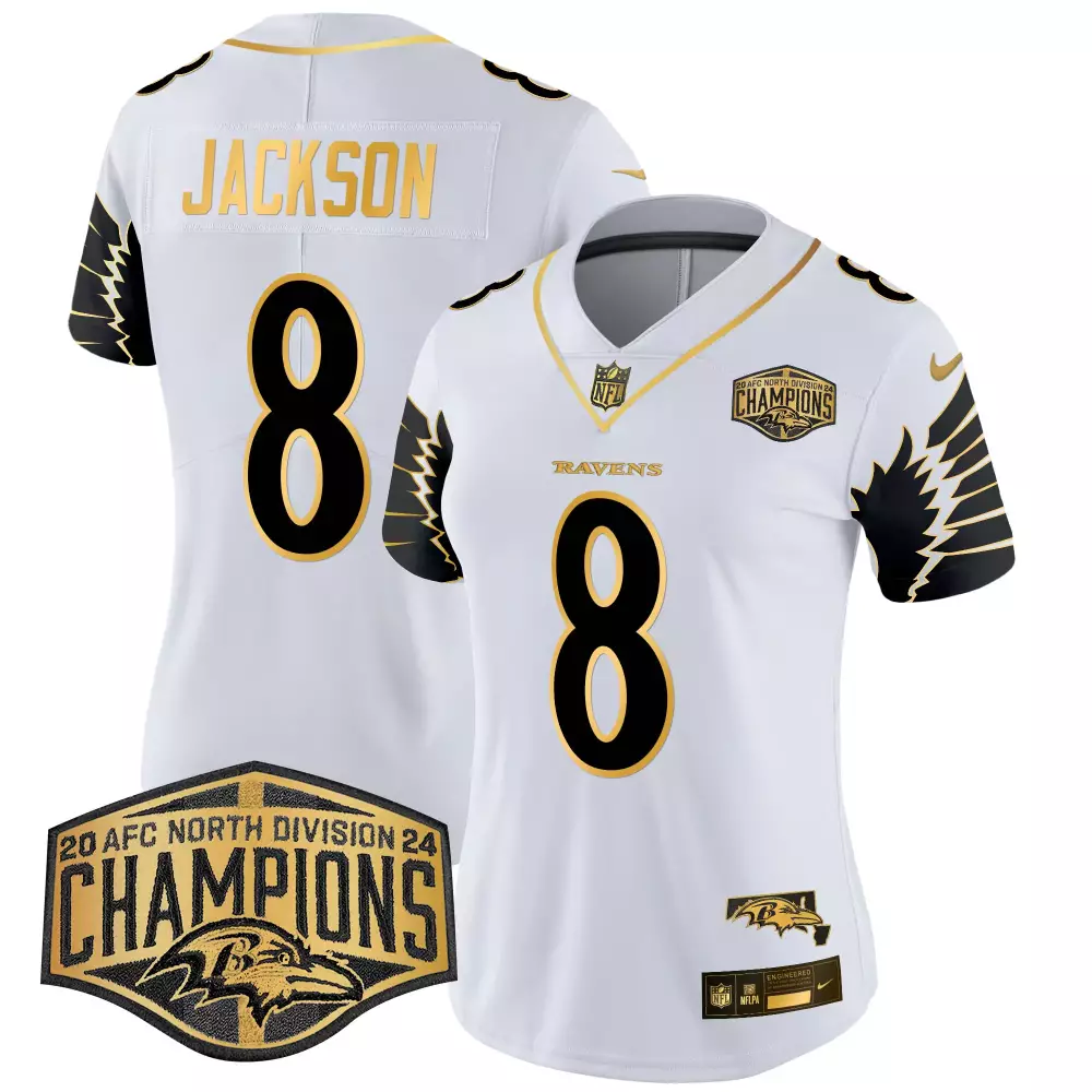 Lamar Jackson Women’s Baltimore Ravens Purple Jersey | Jacoby Jones Patch Vapor Limited Edition | For Men, Women & Youth;Lamar Jackson Women’s Baltimore Ravens Special Jersey | Stitched Vapor Limited Edition | For Men, Women & Youth;Lamar Jackson Women’s Baltimore Ravens Split Gold Jersey | Stitched Vapor Edition | For Men, Women & Youth;Lamar Jackson Women’s Baltimore Ravens White Gold Jersey | 2024 AFC North Champions Maryland Patch | For Men, Women & Youth;Lamar Jackson Women’s Baltimore Ravens White Gold Jersey | Maryland Flag Map 2024 AFC North Champions Patch | For Men, Women & Youth