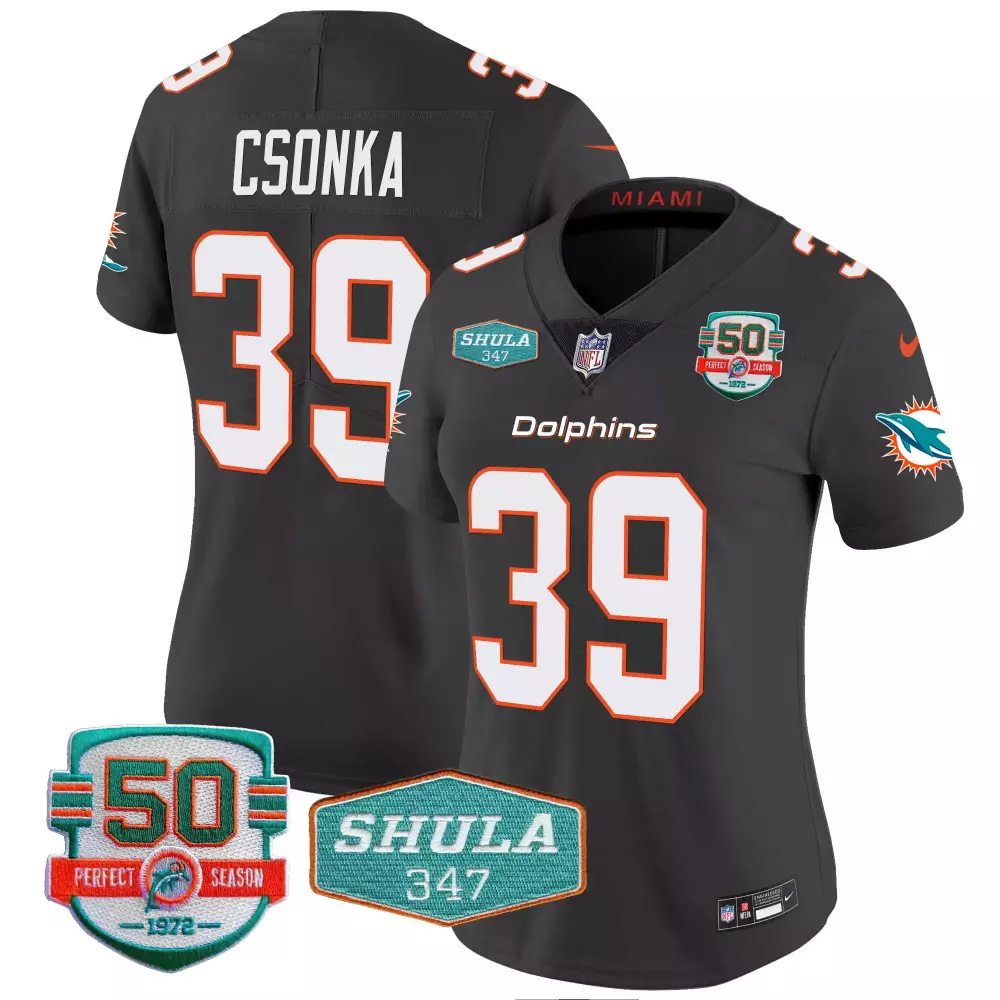 Larry Csonka Miami Dolphins Black Alternate Jersey | Shula 347 Patch Vapor Style | For Men, Women & Youth;Larry Csonka Miami Dolphins Black Women’s Shula 347 Patch Vapor Jersey | All Stitched Fan Gear | For Men, Women & Youth;Larry Csonka Miami Dolphins Black Women’s Vapor Limited Jersey | Miami Vice Style | All Stitched Fan Gear | For Men, Women & Youth;Larry Csonka Miami Dolphins Black Youths 50th Perfect Season Patch Vapor Jersey | All Stitched Fan Gear | For Men, Women & Youth;Larry Csonka Miami Dolphins Inverted Men’s Throwback Vapor Jersey | All Stitched Retro Style | For Men, Women & Youth