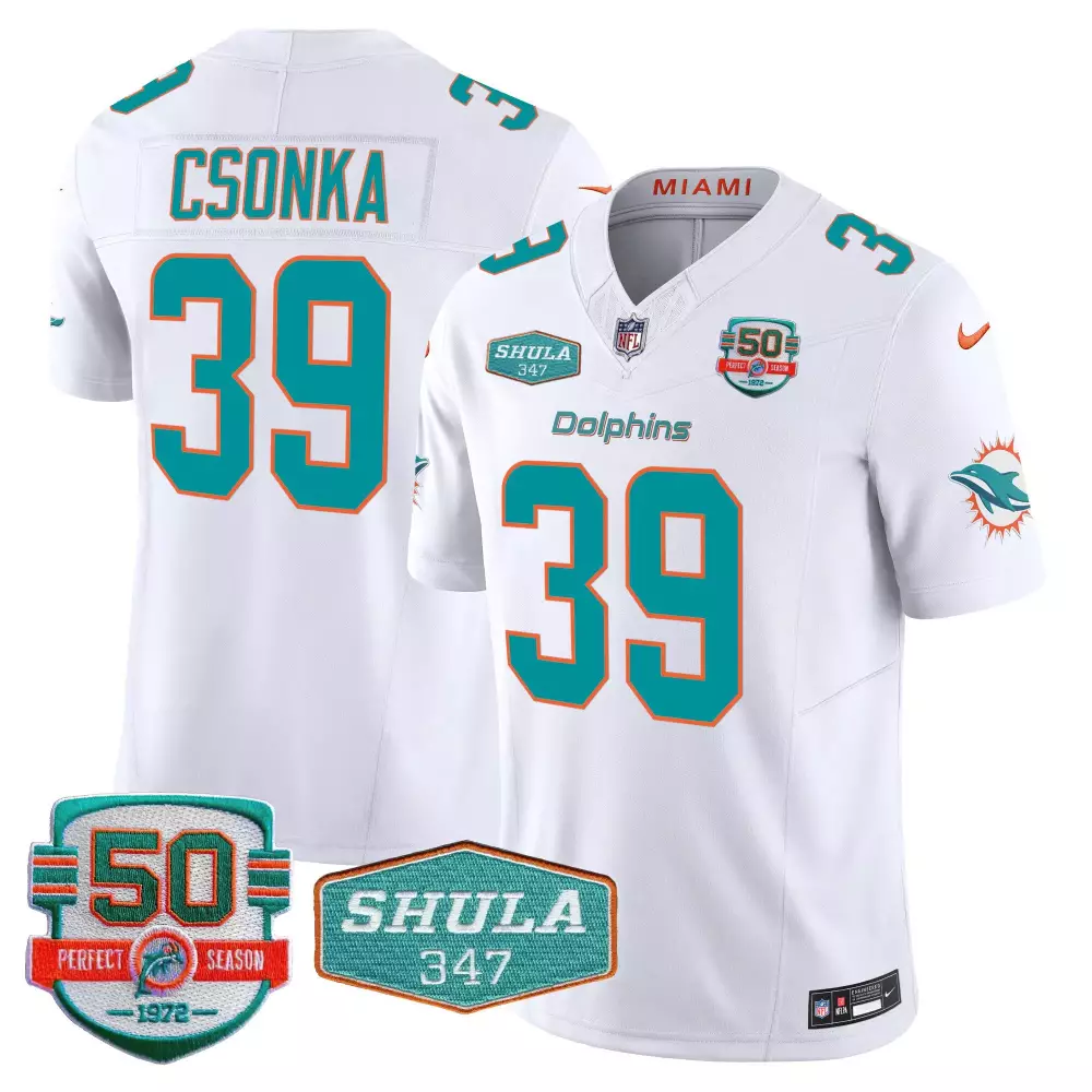 Larry Csonka White Men’s Miami Dolphins Miami Vice Vapor Jersey V4 | Limited Edition | Fan Gear for Game Day | For Men, Women & Youth;Larry Csonka White Men’s Miami Dolphins Shula 347 Patch Vapor Jersey | All Stitched | Perfect Gift Idea for Fans | For Men, Women & Youth;Larry Csonka White Men’s Miami Dolphins Shula 347 Patch Vapor Jersey V2 | Limited Edition | Fan Gear for Game Day | For Men, Women & Youth;Larry Csonka White Men’s Miami Dolphins Throwback Shula 347 Patch Vapor Jersey | All Stitched | Game Day Outfit | For Men, Women & Youth;Larry Csonka White Men’s Miami Dolphins Throwback Vapor Jersey | All Stitched | Perfect Gift Idea for Fans | For Men, Women & Youth