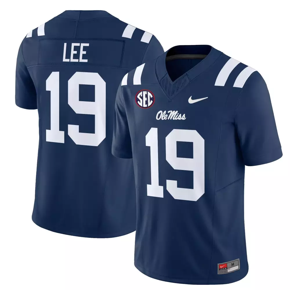 Lee 19 Ole Miss Rebels 2025 Navy Stitched Jersey | Name Patch | Game Day Outfit | For Men, Women & Youth