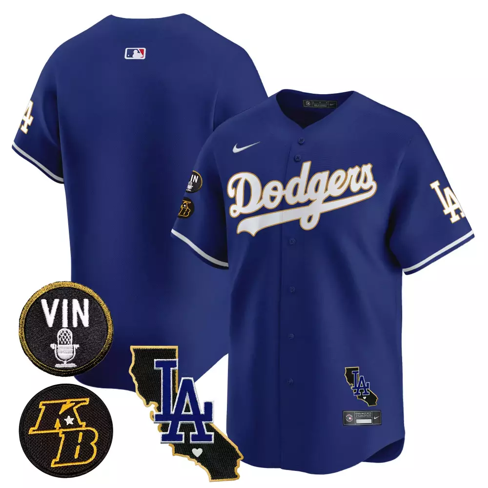 Los Angeles Dodgers 2024 Spring Training Patch Vapor Premier Limited Jersey | Stitched Fan Gear | For Men, Women & Youth;Los Angeles Dodgers 2024 Vin California Patch Gold Trim Vapor Premier Jersey | Limited Edition Fan Gear | For Men, Women & Youth;Los Angeles Dodgers 2024 Vin California Patch Gold Vapor Premier Jersey | Limited Edition Fan Gear | For Men, Women & Youth;Los Angeles Dodgers 2024 Vin Kobe Patch Gold Trim Vapor Premier Jersey | Limited Edition Fan Gear | For Men, Women & Youth;Los Angeles Dodgers 2024 Vin Patch Kobe Bryant Signature Vapor Premier Jersey | Limited Edition Fan Gear | For Men, Women & Youth