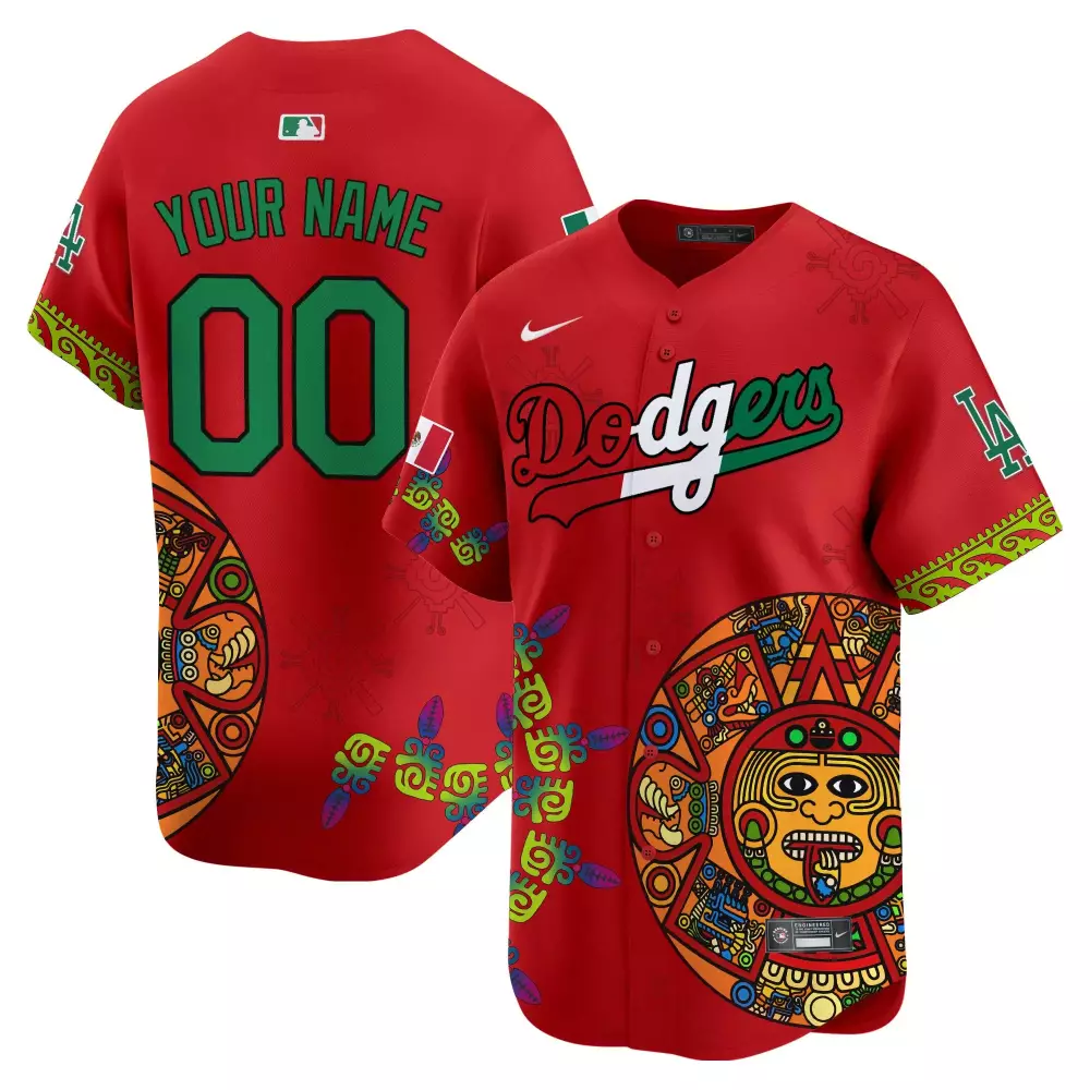 Los Angeles Dodgers Mexico Aztec Calendar Vapor Premier Jersey | Limited Edition Printed Design | Fan Gear for Men, Women & Youth;Los Angeles Dodgers Mexico Aztec Calendar Vapor Premier Limited Jersey | Printed Fan Gear | For Men, Women & Youth;Los Angeles Dodgers Mexico Aztec Calendar Vapor Premier Limited Jersey | Printed Red | Custom Fan Gear | For Men, Women & Youth;Los Angeles Dodgers Mexico Aztec Serpent Pattern Vapor Premier Jersey | Limited Edition Printed Design | Fan Gear for Men, Women & Youth;Los Angeles Dodgers Mexico Aztec Serpent Pattern Vapor Premier Limited Jersey | Printed Fan Gear | For Men, Women & Youth