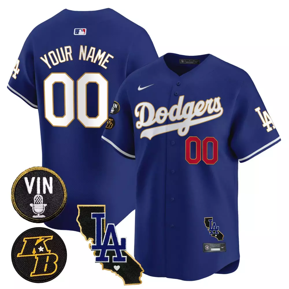 Los Angeles Dodgers Royal Youth Vin Bryant Patch Gold Trim Vapor Premier Limited Custom Jersey | For Men, Women & Youth;Los Angeles Dodgers Royal Youth Vin California Patch Gold Trim Vapor Premier Limited Custom Jersey | For Men, Women & Youth;Los Angeles Dodgers Royal Youth Vin California Patch Gold Vapor Premier Limited Custom Jersey All Stitched | For Men, Women & Youth;Los Angeles Dodgers Royal Youth Vin Kobe Patch Gold Trim Vapor Premier Limited Custom Jersey All Stitched | For Men, Women & Youth;Los Angeles Dodgers Royal Youth Vin Patch Kobe Bryant Gold Trim Vapor Premier Limited Custom Jersey V2 All Stitched | For Men, Women & Youth