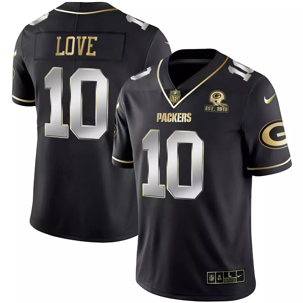 Love 10 Green Bay Packers Black Stitched Jersey | 100 Seasons Name Patch | Men’s Style | Limited Edition Fan Gear | For Men, Women & Youth