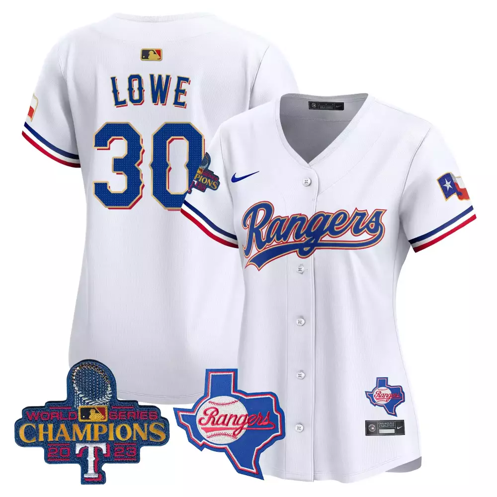 Lowe 30 Texas Rangers 2023 Women’s White All Stitched Vapor Jersey | World Series Champions Limited | For Men, Women & Youth;Lowe 30 Texas Rangers 2023 Women’s White Champions Vapor Jersey | All Stitched Fan Gear | For Men, Women & Youth;Lowe 30 Texas Rangers 2023 Women’s White Gold Trim All Stitched Vapor Limited Jersey | For Men, Women & Youth;Lowe 30 Texas Rangers 2023 Women’s White Gold Trim Stitched Jersey | Limited Edition Fan Gear for Game Day | For Men, Women & Youth;Lowe 30 Texas Rangers 2023 Women’s White Vapor Jersey | All Stitched Fan Gear | For Men, Women & Youth