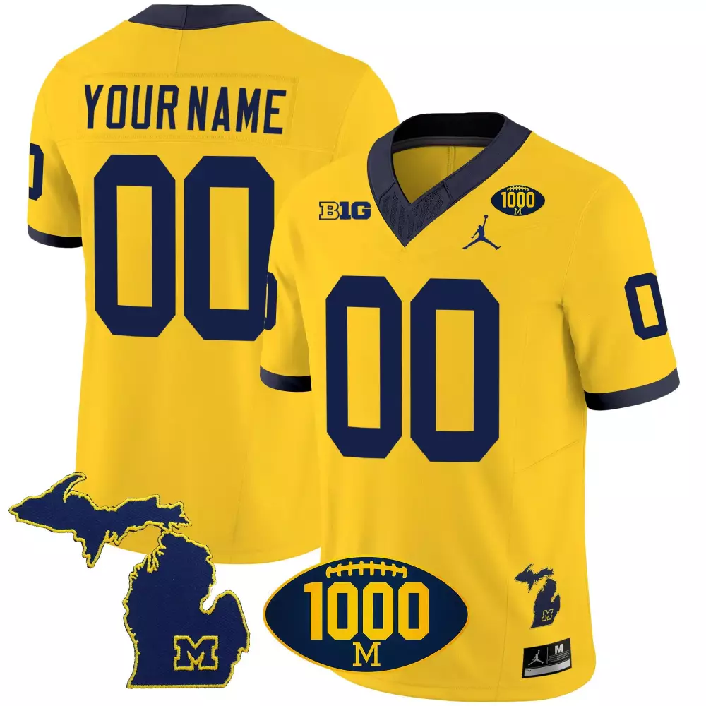 Maize Men’s Michigan Wolverines 1000 Wins Patch Vapor Custom Jersey V2 | Stitched Fan Gear for Men, Women & Youth