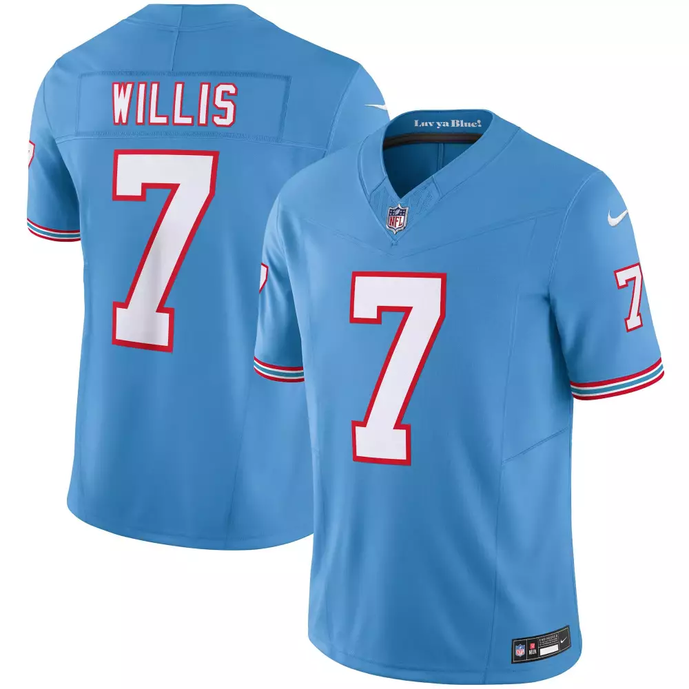 Malik Willis Light Blue Titans 1997 Throwback Limited Vapor Jersey | Stitched Fan Gear for Women | Perfect Gift Idea;Malik Willis Light Blue Titans Special Vapor Limited Jersey | Stitched Fan Gear for Women | Game Day Outfit;Malik Willis Light Blue Titans Throwback Limited Vapor Jersey | Stitched Fan Gear for Men, Women & Youth;Malik Willis Light Blue Titans Throwback Limited Vapor Jersey | Stitched Fan Gear for Women | For Game Day;Malik Willis Men’s 1997 Throwback Titans Gold Jersey | Limited Edition Stitched Vapor | Ideal Fan Gear for All | For Men, Women & Youth