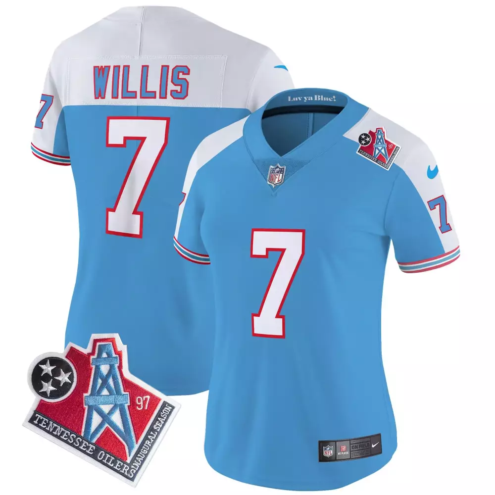 Malik Willis Men’s Titans Throwback White Alternate Limited Vapor Jersey | All Stitched Fan Gear | For Men, Women & Youth;Malik Willis Split Men’s Titans 1997 Throwback Limited Vapor Jersey | All Stitched Fan Gear | For Men, Women & Youth;Malik Willis Women’s 1997 Throwback Titans Jersey | Limited Edition Stitched Vapor | Game Day Outfit for All Fans | For Men, Women & Youth;Malik Willis Women’s 1997 Throwback Titans Jersey | Limited Edition Stitched Vapor | Game Day Outfit for All Fans | For Men, Women & Youth;Malik Willis Women’s Special Vapor Titans Jersey | Limited Edition Stitched Design | Perfect Fan Gear for Game Day | For Men, Women & Youth