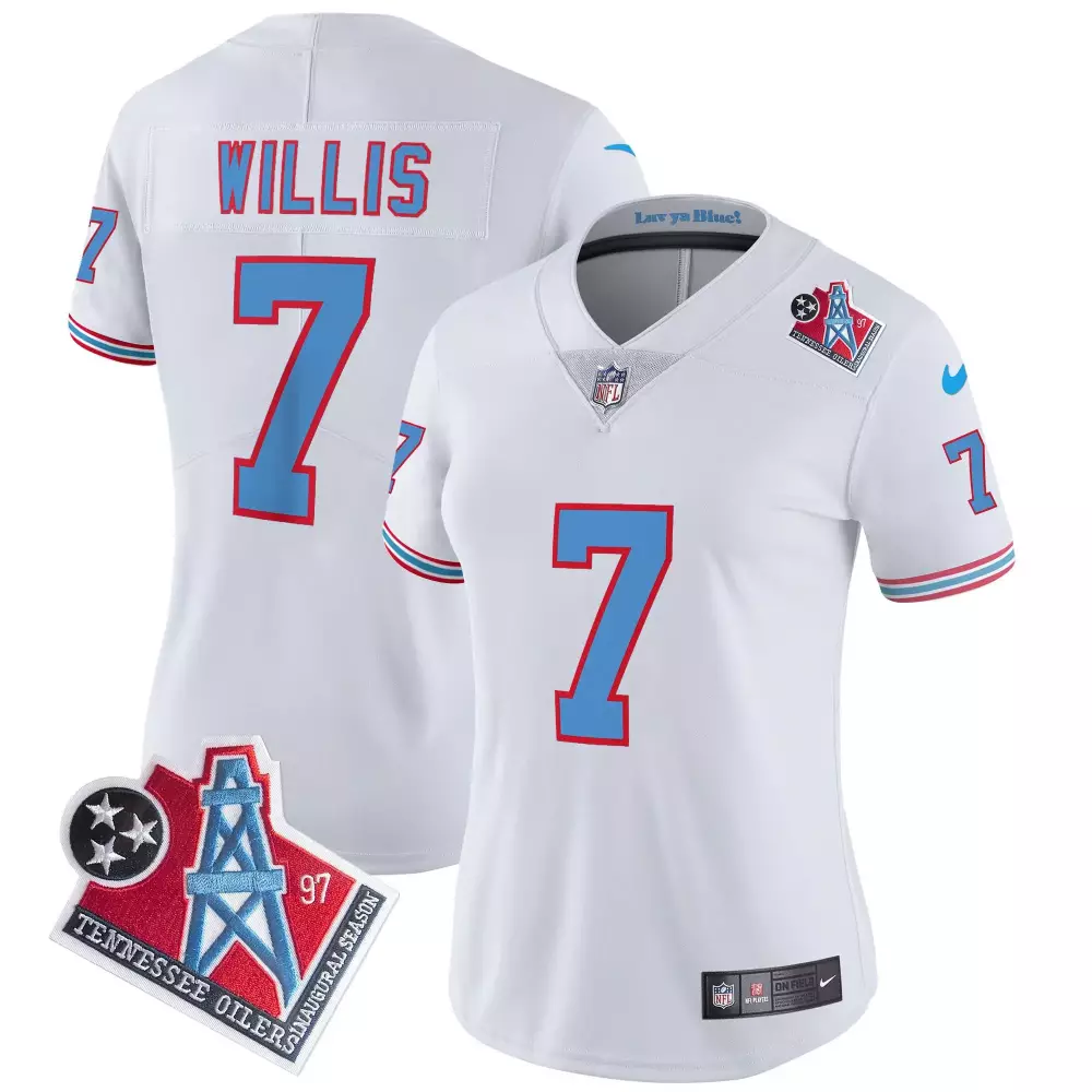 Malik Willis Tennessee Titans Throwback Limited Vapor Jersey | Stitched Fan Gear | For Men, Women & Youth;Malik Willis White Gold Jersey | Tennessee Titans White Gold Edition | Fan Gear for Men | For Men, Women & Youth;Malik Willis Women’s Tennessee Titans 1997 Throwback Limited Vapor Jersey | Stitched Fan Gear | For Women;Malik Willis Women’s Tennessee Titans 1997 Throwback Limited Vapor Jersey | Stitched Fan Gear | For Women & Youth;Malik Willis Women’s Tennessee Titans Special Vapor Limited Jersey | Stitched Fan Gear | For Women