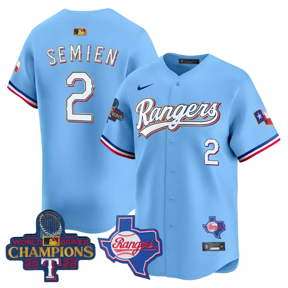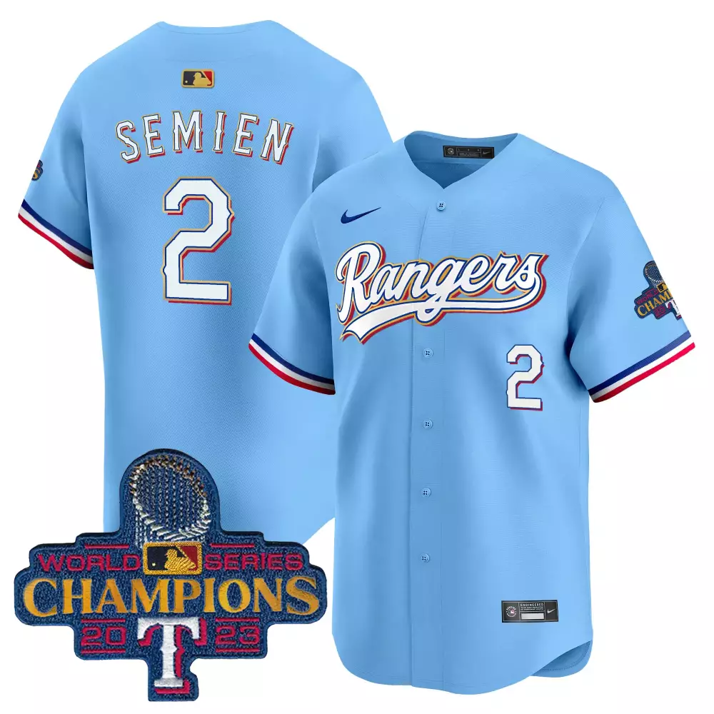 Marcus Semien Blue Men’s Texas Rangers 2023 World Series Champions Gold Trim Vapor Premier Elite Jersey | All Stitched | Limited Edition Fan Gear | For Men, Women & Youth;Marcus Semien Blue Men’s Texas Rangers 2023 World Series Champions Gold Trim Vapor Premier Limited Jersey | All Stitched | Limited Edition Fan Gear | For Men, Women & Youth;Marcus Semien Blue Men’s Texas Rangers 2023 World Series Champions Gold Trim Vapor Premier Limited Jersey V2 | All Stitched | Limited Edition Fan Gear | For Men, Women & Youth;Marcus Semien Blue Men’s Texas Rangers 2023 World Series Cool Base Jersey | All Stitched | Replica Fan Gear | For Men, Women & Youth;Marcus Semien Blue Men’s Texas Rangers 2023 World Series Cool Base Jersey V2 | All Stitched | Replica Fan Gear | For Men, Women & Youth