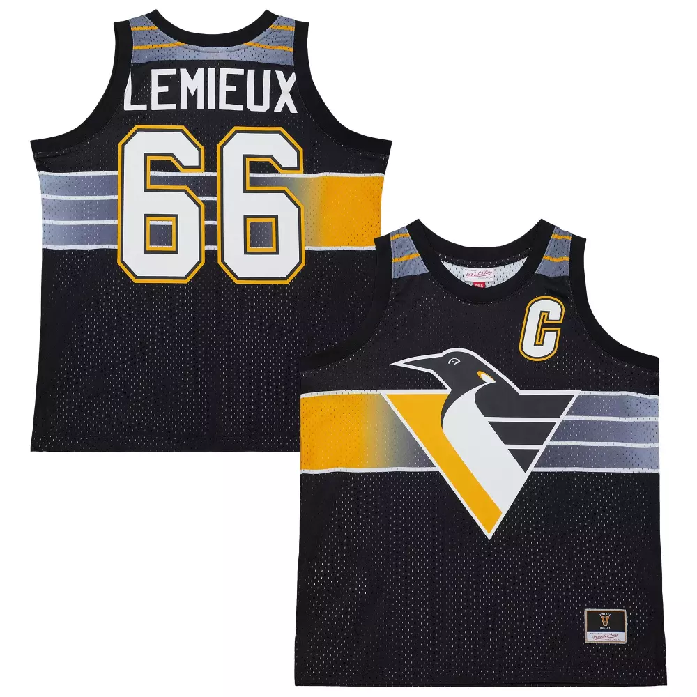 mario lemieux pittsburgh penguins mitchell ness 1996 97 blue line 2 0 jersey black;mario lemieux pittsburgh penguins mitchell ness big tall 1991 92 blue line 2 0 jersey black;mario lemieux pittsburgh penguins mitchell ness unisex maxxed out fashion basketball jersey black;matt dumba pittsburgh penguins fanatics home breakaway jersey black;philip kemp pittsburgh penguins fanatics home breakaway jersey black