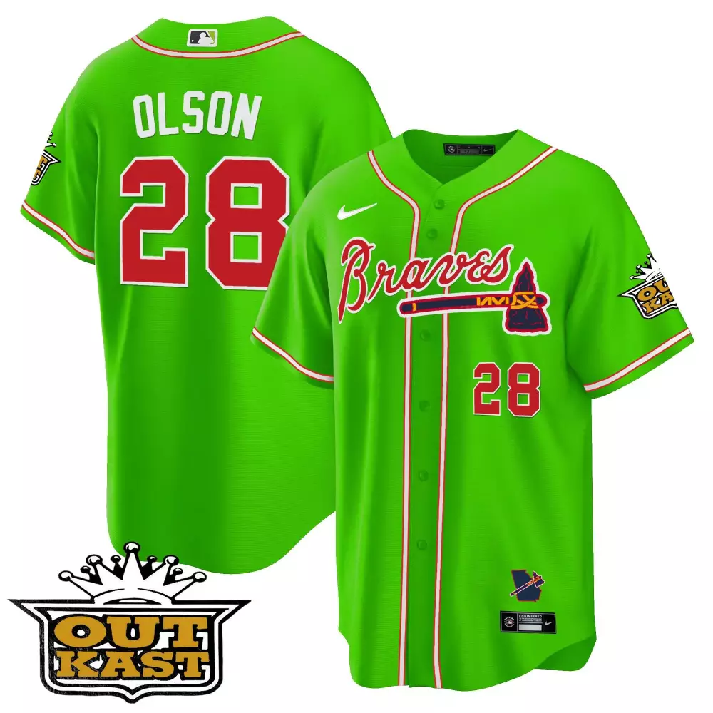 Matt Olson Atlanta Braves 2025 Outkast Cool Base Jersey V3 | Bright Green | Stitched Replica Fan Gear | For Men, Women & Youth;Matt Olson Atlanta Braves 2025 Outkast Cool Base Jersey V3 | Navy Stitched | Limited Edition | For Men, Women & Youth;Matt Olson Atlanta Braves 2025 Outkast Cool Base Jersey V3 | Stitched White | Limited Edition Fan Gear | For Men, Women & Youth;Matt Olson Atlanta Braves 2025 Outkast Cool Base Jersey V3 Galaxy Version | Navy Stitched | Limited Edition | For Men, Women & Youth;Matt Olson Atlanta Braves 2025 Outkast Flex Base Jersey | Bright Green | Stitched Replica Fan Gear | For Men, Women & Youth