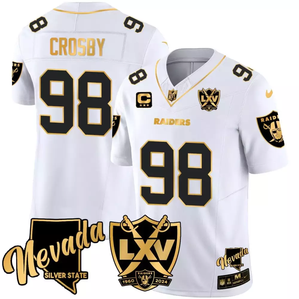 Maxx Crosby Men’s Game Jersey | Black Raiders All Stitched Fan Gear | For Men, Women & Youth;Maxx Crosby Men’s Raiders 2024 Gold Vapor Limited Jersey | Stitched | 65th Anniversary Fan Gear | For Men, Women & Youth;Maxx Crosby Men’s Raiders 60th Season Patch Gold Split Jersey | Stitched | Replica Fan Gear | For Men, Women & Youth;Maxx Crosby Men’s Raiders Gold Arch Smoke Vapor Jersey | Stitched | Fan Gear for Game Day | For Men, Women & Youth;Maxx Crosby Men’s Raiders Raider4Life Patch Jersey | Stitched | Custom Fan Gear | For Men, Women & Youth