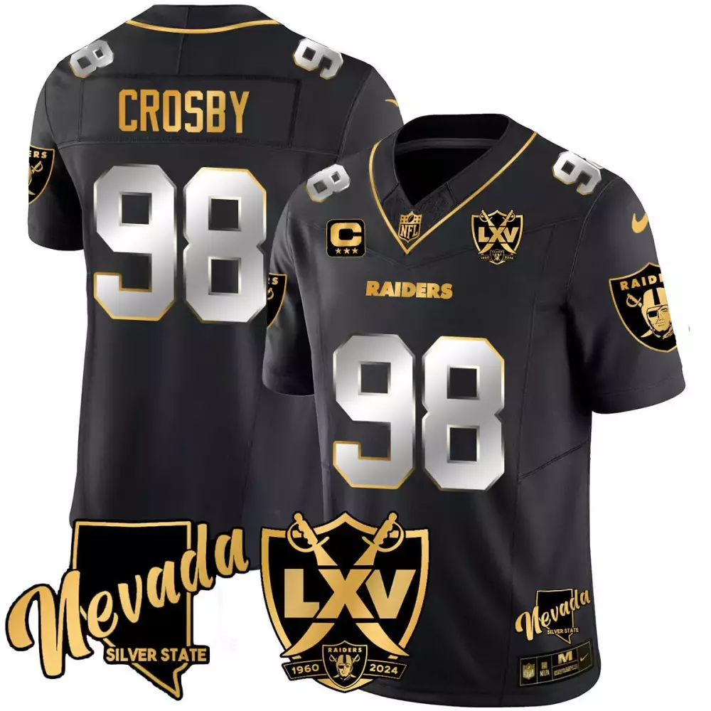 Maxx Crosby Nike Youth Game Jersey | Black Raiders Fan Gear | For Men, Women & Youth;Maxx Crosby Raiders 2024 Black Limited Jersey | Gold Vapor Style for Men, Women & Youth | 65th Anniversary Edition;Maxx Crosby Raiders 2024 Inaugural Season Gold Split Jersey | Stitched Fan Gear for Men, Women & Youth | Limited Edition;Maxx Crosby Raiders Black Gold Jersey | All Stitched Fan Gear | For Men, Women & Youth;Maxx Crosby Raiders Black Inverted Limited Jersey | Vapor Style for Men, Women & Youth | Inaugural Season Fan Gear