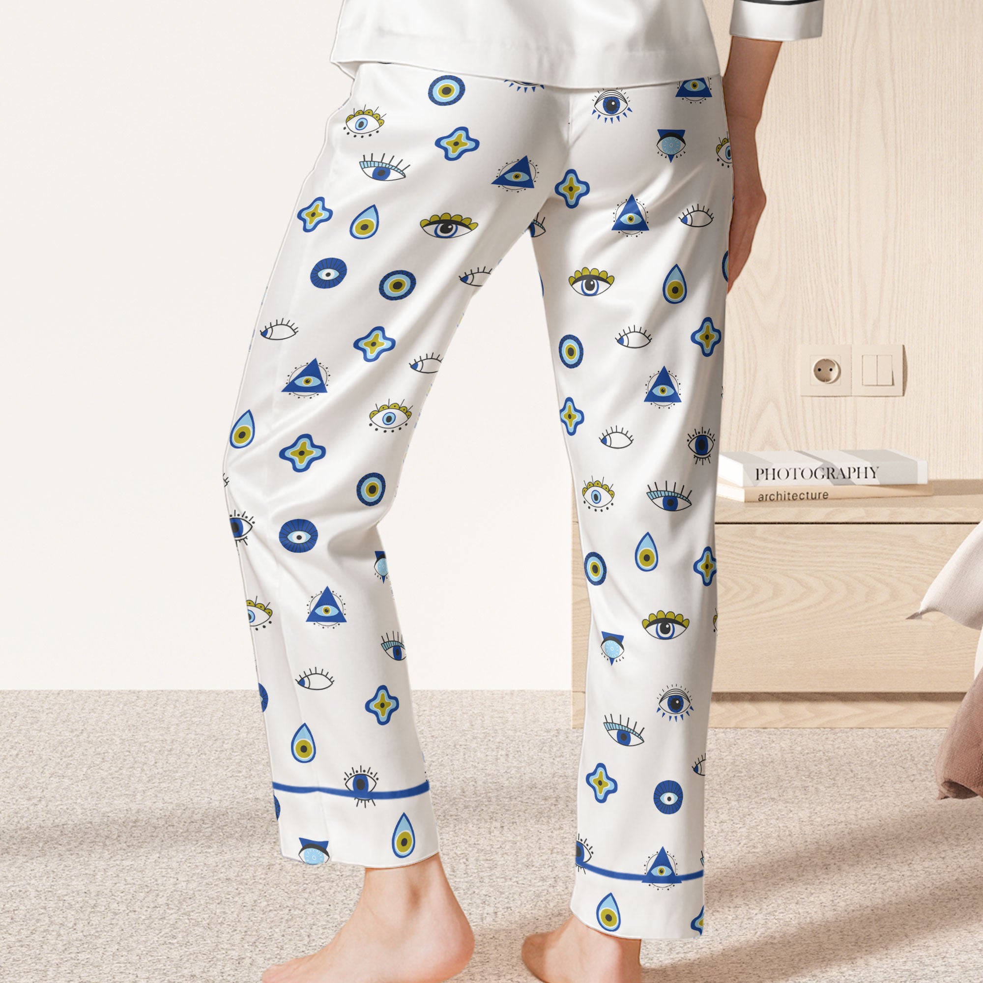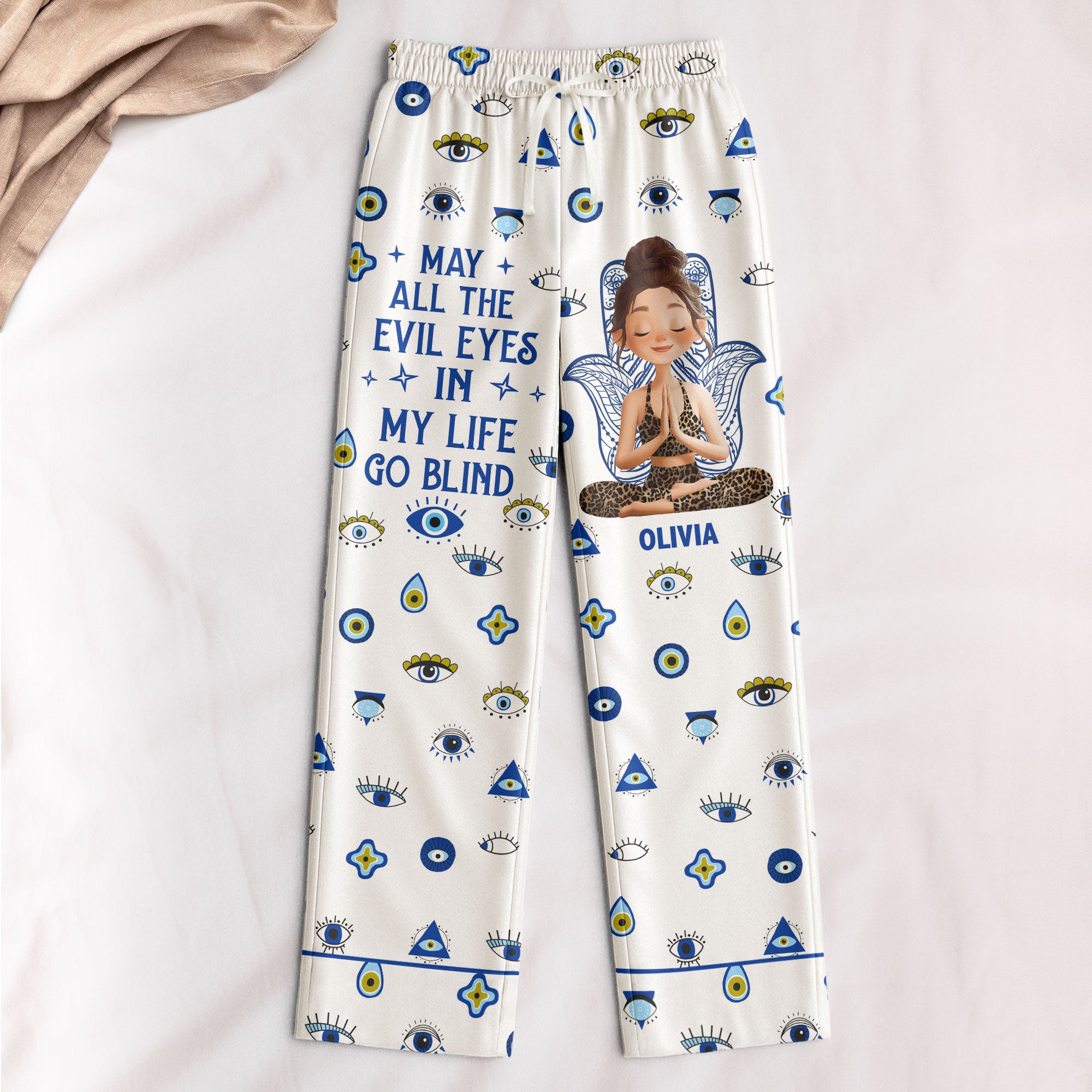 Crafted from decadent satin fabric, our Personalized Satin Pajama Pants bestows the comforting touch along with a stylish and bold statement. Adorned with the empowering words: “May All The Evil Eyes In My Life Go Blind,” it serves as a constant beacon of protection and confidence. This makes it an ideal treat for your yoga enthusiast friend who appreciates the balance of body, mind, and spirit.