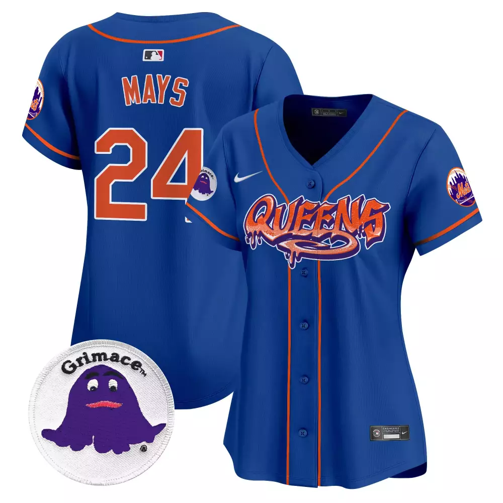 Mays 24 Women’s Blue Graffiti Jersey | Mets Queens Limited Edition 2023 | Fan Gear for Men, Women & Youth