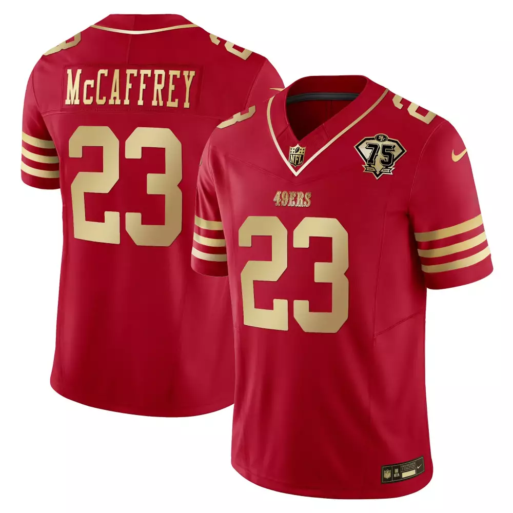 McCaffrey 2023 Salute to Service Limited Edition Jersey | Brown | Fan Gear for Youth;McCaffrey 23 San Francisco 49ers 2022 Black Gold Stitched Youth Jersey | Name Patch | Gift Idea for Young Fans;McCaffrey 23 San Francisco 49ers 2022 Stitched Vapor Jersey | 75th Anniversary Red | Limited Edition Fan Gear | For Men, Women & Youth;McCaffrey 23 San Francisco 49ers 2022 Stitched Vapor Jersey | Red 75th Anniversary Edition | Replica Fan Gear | For Men, Women & Youth;McCaffrey 23 San Francisco 49ers 2022 Youth Stitched Vapor Jersey | Black 75th Anniversary | Game Day Outfit | For Men, Women & Youth