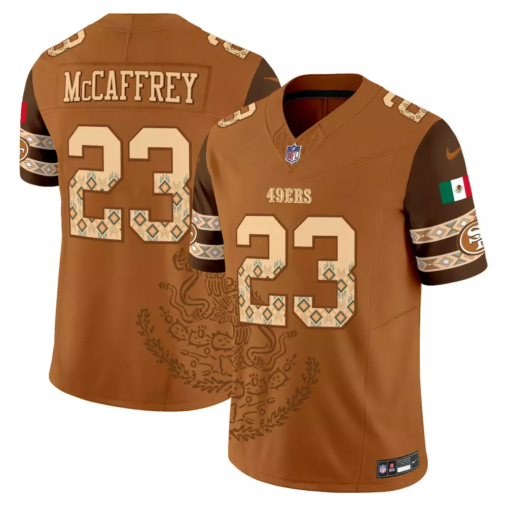 McCaffrey 23 San Francisco 49ers 2023 Brown Stitched Jersey | Name Patch | Fan Gear for Men, Women & Youth