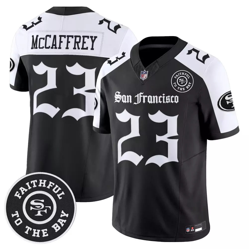 McCaffrey 23 San Francisco 49ers 2023 Women’s Stitched Vapor Jersey | Black with 75th Patch | Game Day Outfit | For Men, Women & You;McCaffrey 23 San Francisco 49ers Black All Stitched Jersey | 75th Anniversary Patch | 2023 | For Men, Women & Youth;McCaffrey 23 San Francisco 49ers Black Stitched Jersey | 2022 Name Patch | For Men, Women & Youth;McCaffrey 23 San Francisco 49ers Black Stitched Jersey | 2023 Limited Edition | Fan Gear for All | For Men, Women & Youth;McCaffrey 23 San Francisco 49ers Black Stitched Jersey | 2023 Style Name Patch | For Men, Women & Youth
