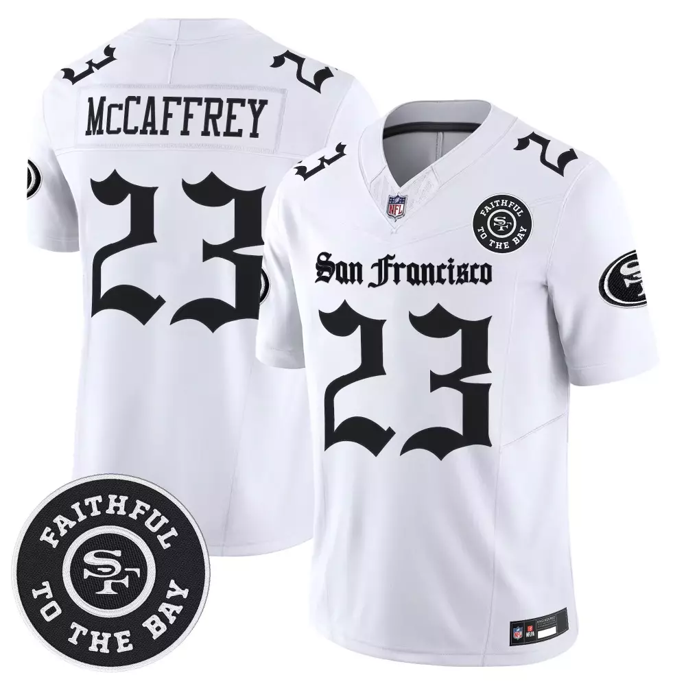 McCaffrey 23 San Francisco 49ers White Stitched Jersey | 2023 Style Name Patch | For Men, Women & Youth;McCaffrey 23 San Francisco 49ers White Stitched Jersey | 75th Anniversary Patch | 2022 | For Men, Women & Youth;McCaffrey 23 San Francisco 49ers White Stitched Jersey | Name Patch 2024 | For Men, Women & Youth;McCaffrey 23 San Francisco 49ers White Vapor Stitched Jersey | Faithful to the Bay 2023 | For Men, Women & Youth;McKinnon 1 San Francisco 49ers 2023 All Stitched Vapor Jersey | Super Bowl Edition Red | For Men