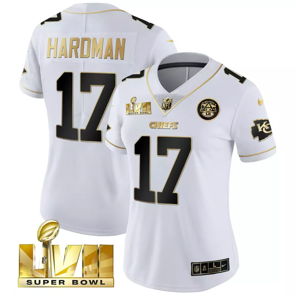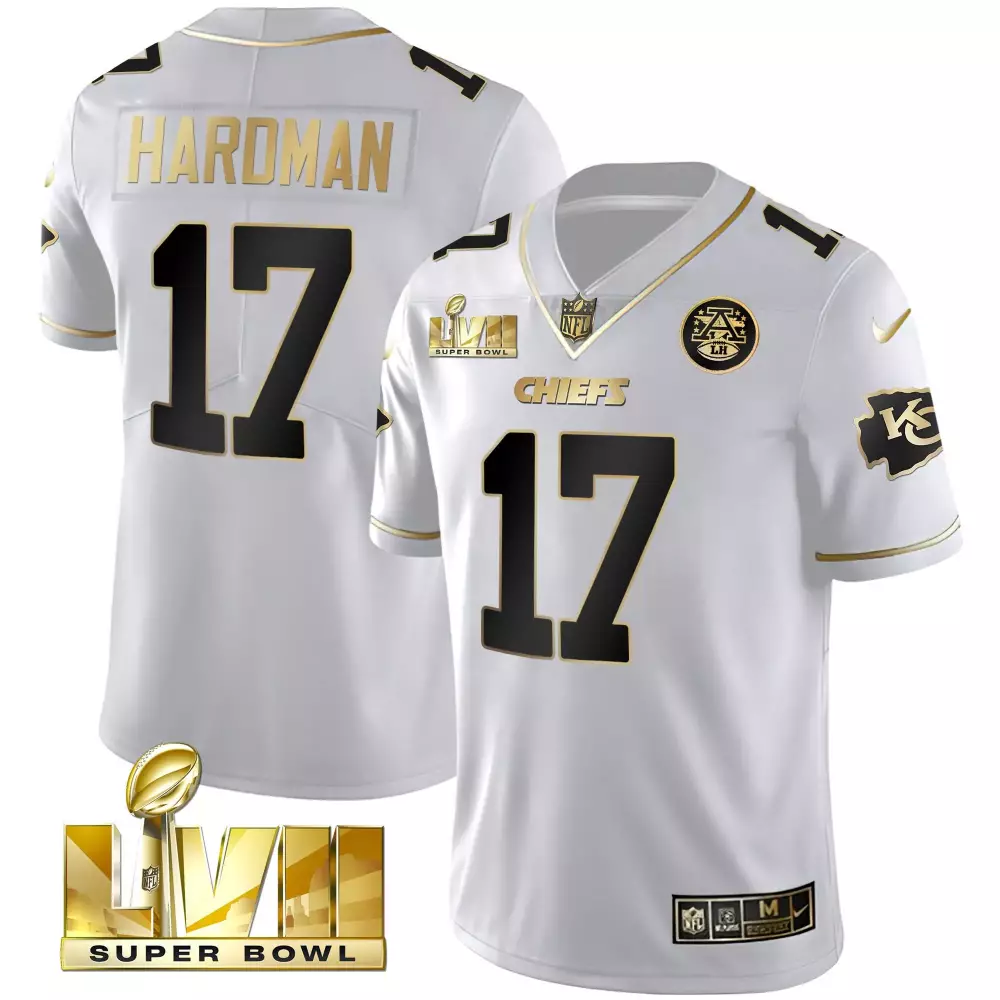 Mecole Hardman Kansas City Chiefs Super Bowl Vapor Gold Jersey | White Gold | Stitched Fan Gear | For Men, Women & Youth