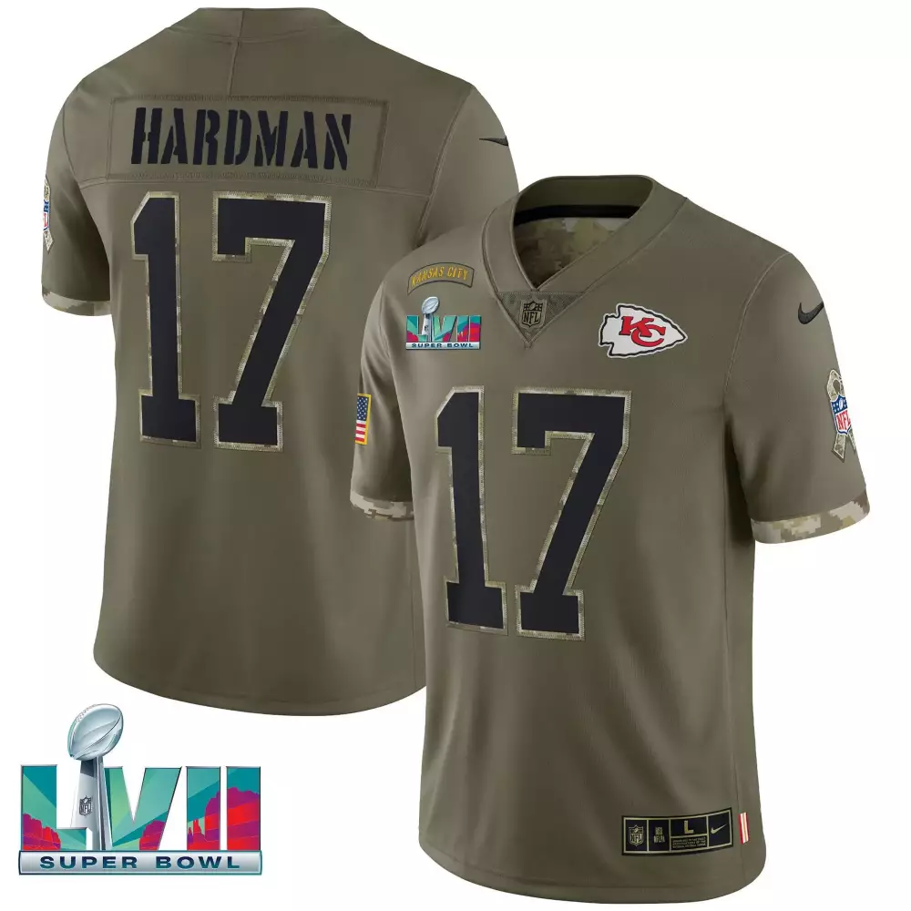 Mecole Hardman Men’s Kansas City Chiefs Super Bowl LVII Salute to Service Player Jersey | All Stitched | Game Day Outfit | For Men, Women & Youth