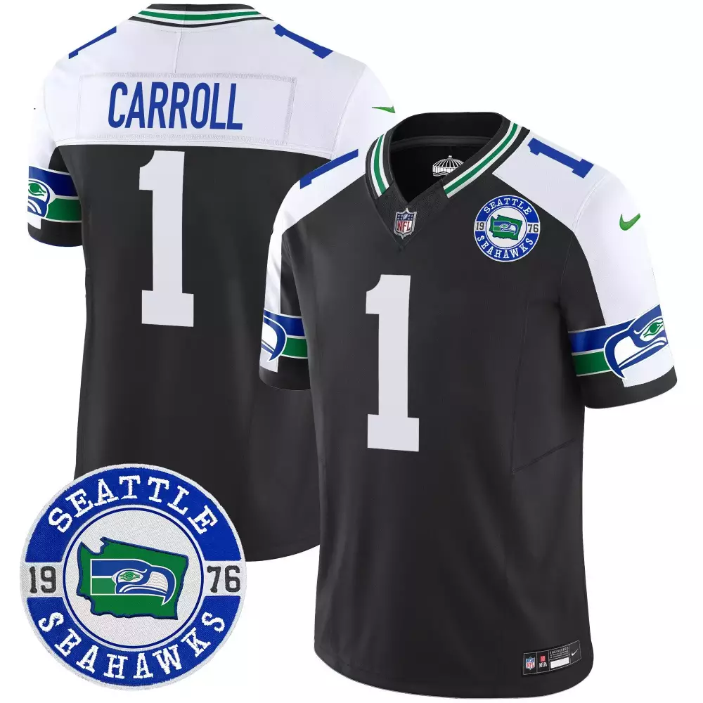 Men’s Black Stitched Game Jersey Seattle Seahawks Carroll 1 Year 1976 Name Patch | Classic Fan Gear for Collectors | For Men, Women & Youth