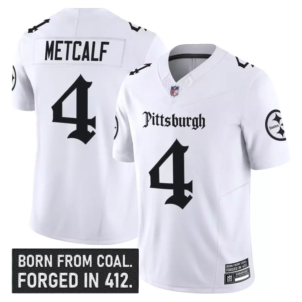 Metcalf 4 Men’s Vapor Jersey | Pittsburgh Steelers Black Gothic Edition 2023 | Embroidered Patch for Men, Women & Youth;Metcalf 4 Men’s Vapor Jersey | Pittsburgh Steelers White Limited Edition 1933 Patch | Fan Gear for Men, Women & Youth;Metcalf 4 Men’s Vapor Stitched Jersey | Pittsburgh Steelers 1933 Patch Gold Limited Edition | Fan Gear for Men, Women & Youth;Metcalf 4 Men’s Vapor Stitched Jersey | Pittsburgh Steelers White 2023 Edition with Embroidered Patch | Fan Gear for Men, Women & Youth;Metcalf 4 Pittsburgh Steelers Men’s Stitched Vapor Jersey | White Name Patch 2023 | Fan Gear for Men, Women & Youth