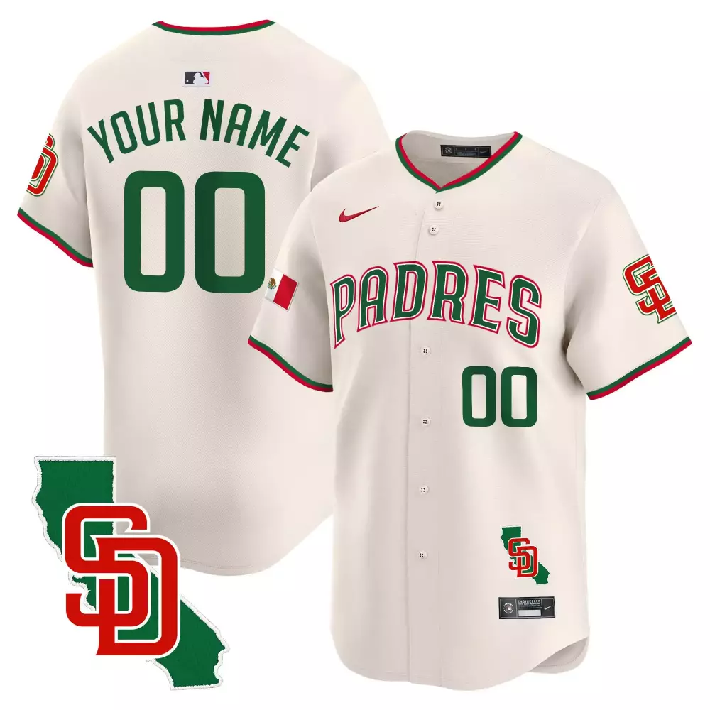 Mexico California Patch Cream San Diego Padres Jersey V5 | Vapor Premier Limited Edition | Custom Stitched Fan Gear | For Men, Women & Youth