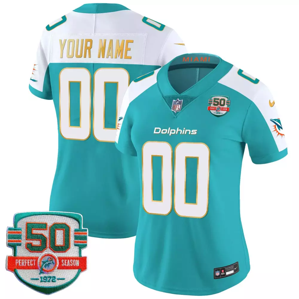Miami Dolphins Aqua Alternate White Youth Vapor Limited Custom Jersey | All Stitched | Perfect Fan Gear for Young Fans | For Men, Women & Youth;Miami Dolphins Aqua Alternate Women 50th 1972 Perfect Season Patch Vapor Custom Jersey | All Stitched | Stylish Fan Gear for Women | For Men, Women & Youth;Miami Dolphins Aqua Alternate Women 50th Perfect Season Florida Patch Vapor Custom Jersey | All Stitched | Stylish Fan Gear for Women | For Men, Women & Youth;Miami Dolphins Aqua Alternate Women Gold Trim Vapor Limited Custom Jersey | All Stitched | Stylish Fan Gear for Women | For Men, Women & Youth;Miami Dolphins Aqua Alternate Women Miami Vice Vapor Limited Custom Jersey V2 | All Stitched | Stylish Fan Gear for Women | For Men, Women & Youth