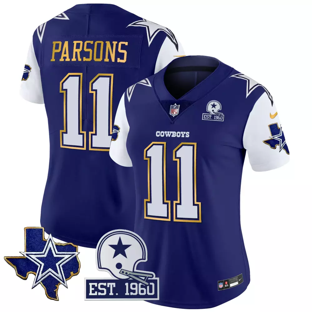 Micah Parsons Dallas Cowboys Royal Women’s Texas John Madden Patch Vapor Jersey | Limited Edition All Stitched | Fan Gear for Women & Youth