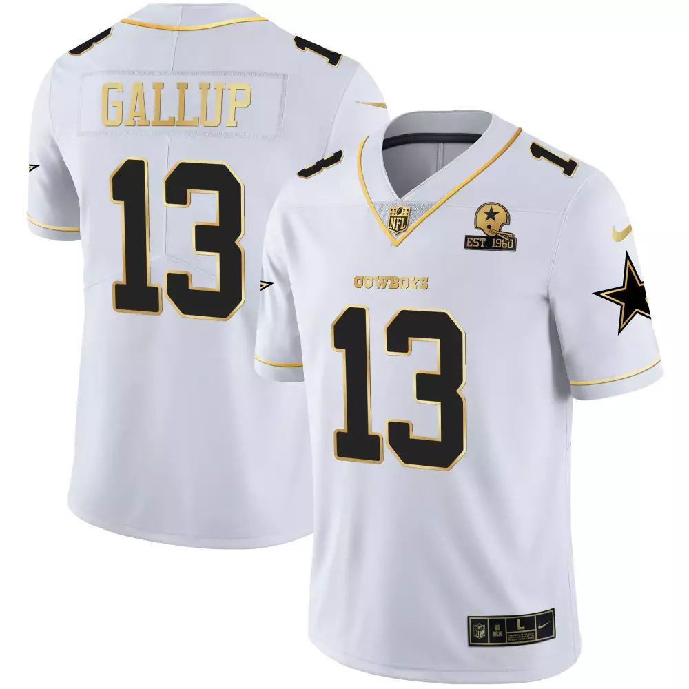 Michael Gallup Dallas Cowboys Black White Gold Game Team Est 1960 Patch Jersey | All Stitched Fan Gear | For Men, Women & Youth;Michael Gallup Dallas Cowboys Black White Gold Vapor Limited Jersey | All Stitched Fan Gear | For Men, Women & Youth;Michael Gallup Dallas Cowboys Est 1960 We Dem Boyz Patch Gold Vapor Limited Jersey | All Stitched Fan Gear | For Men, Women & Youth;Michael Gallup Dallas Cowboys Est 1960 We Dem Boyz Patch Gold Vapor Limited Jersey V2 | All Stitched Fan Gear | For Men, Women & Youth;Michael Gallup Dallas Cowboys Gold Split Vapor Est 1960 Patch Jersey | All Stitched Fan Gear | For Men, Women & Youth
