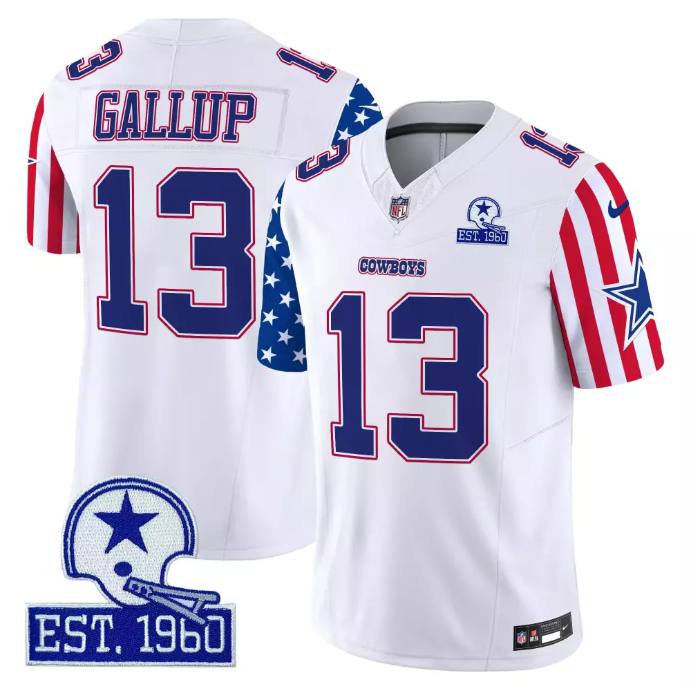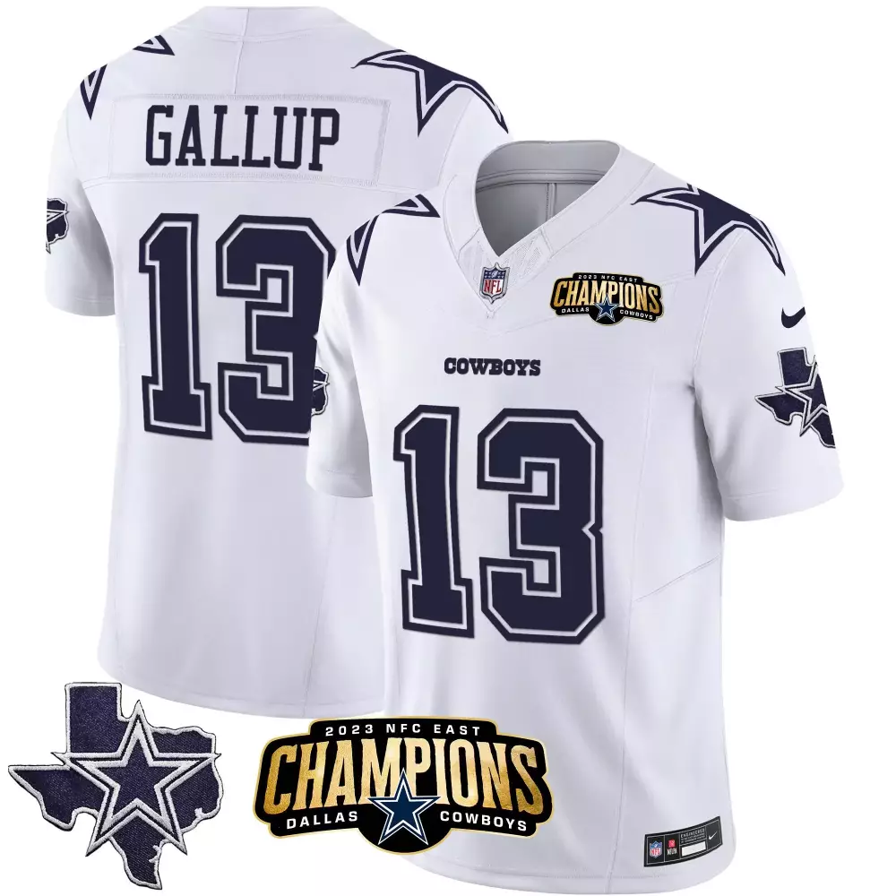 Michael Gallup Men’s Dallas Cowboys Gold Split Vapor Jersey | Limited Edition 1960 Patch | Stitched Fan Gear | For Men, Women & Youth;Michael Gallup Men’s Dallas Cowboys Split Gold Vapor Jersey | Limited Edition 1960 Patch | Stitched Fan Gear | For Men, Women & Youth;Michael Gallup Men’s Dallas Cowboys White Vapor Jersey | 2023 NFC East Champions Patch | Stitched Fan Gear | For Men, Women & Youth;Michael Gallup Men’s Dallas Cowboys White Vapor Jersey | 2024 Mexico Limited Edition | Stitched Fan Gear | For Men, Women & Youth;Michael Gallup Men’s Dallas Cowboys White Vapor Jersey | American Style Limited Edition | Stitched Fan Gear | For Men, Women & Youth